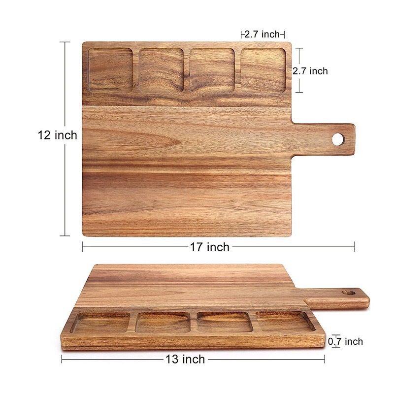 아카시아 나무는 손잡이가있는 도마 부엌을 걸 수 있습니다 나무 도마 서브 포맷 단단한 나무 과일 델리 플레이트