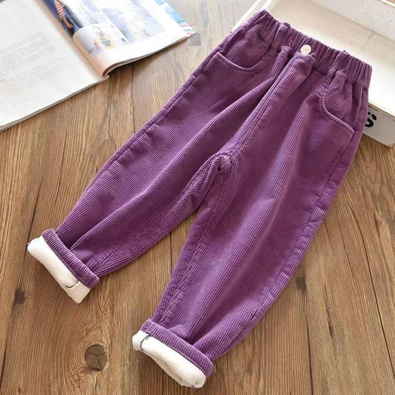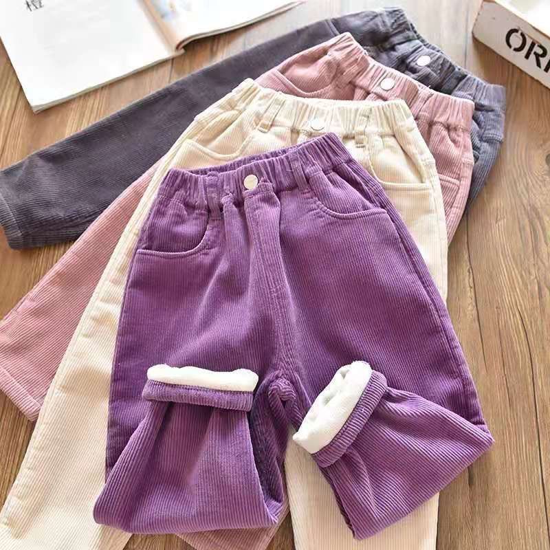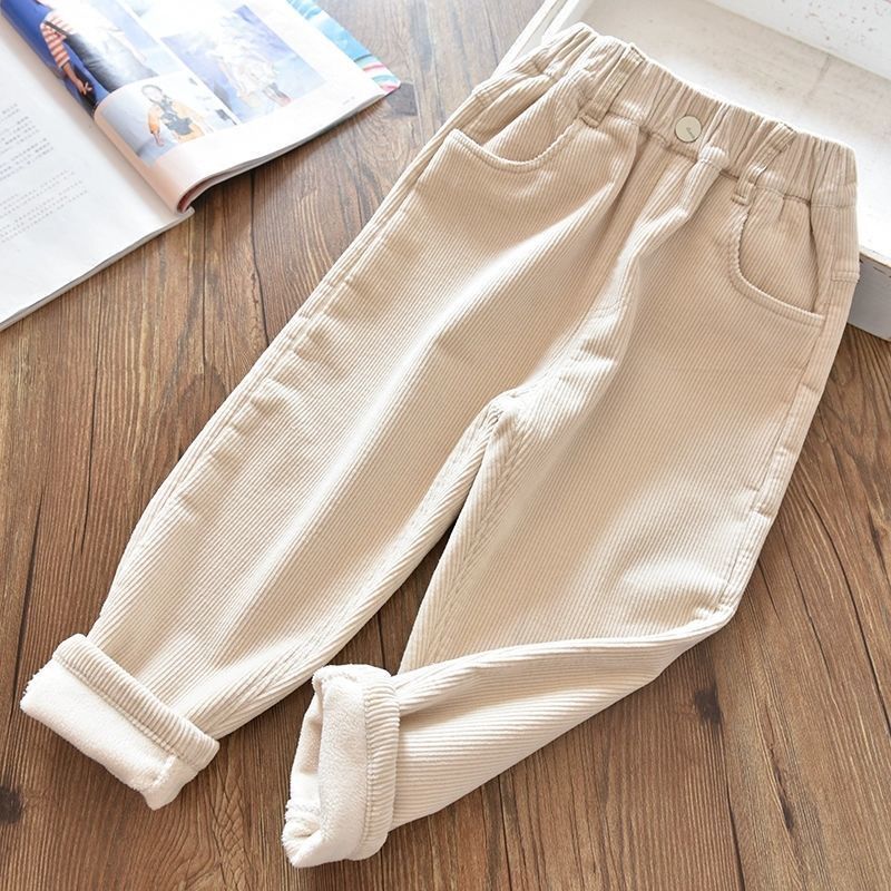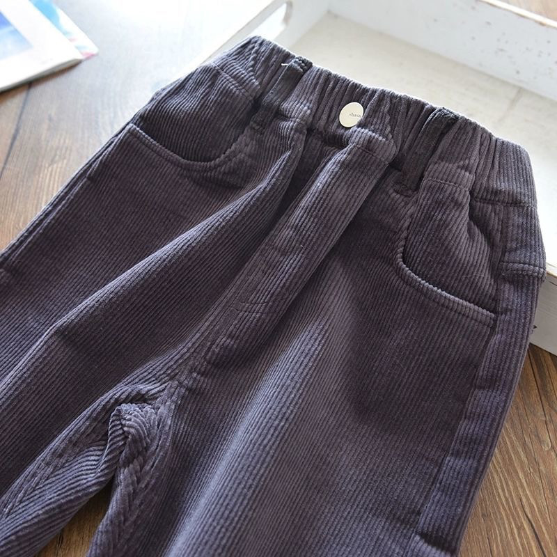소녀 소년 바지 가을과 겨울 바깥 옷 기모 두꺼운 새 어린이 코듀로이 바지 느슨한 캐주얼 서양식 폭발스토어 가기
