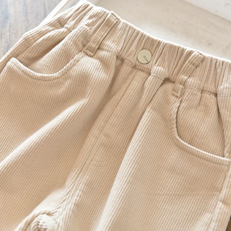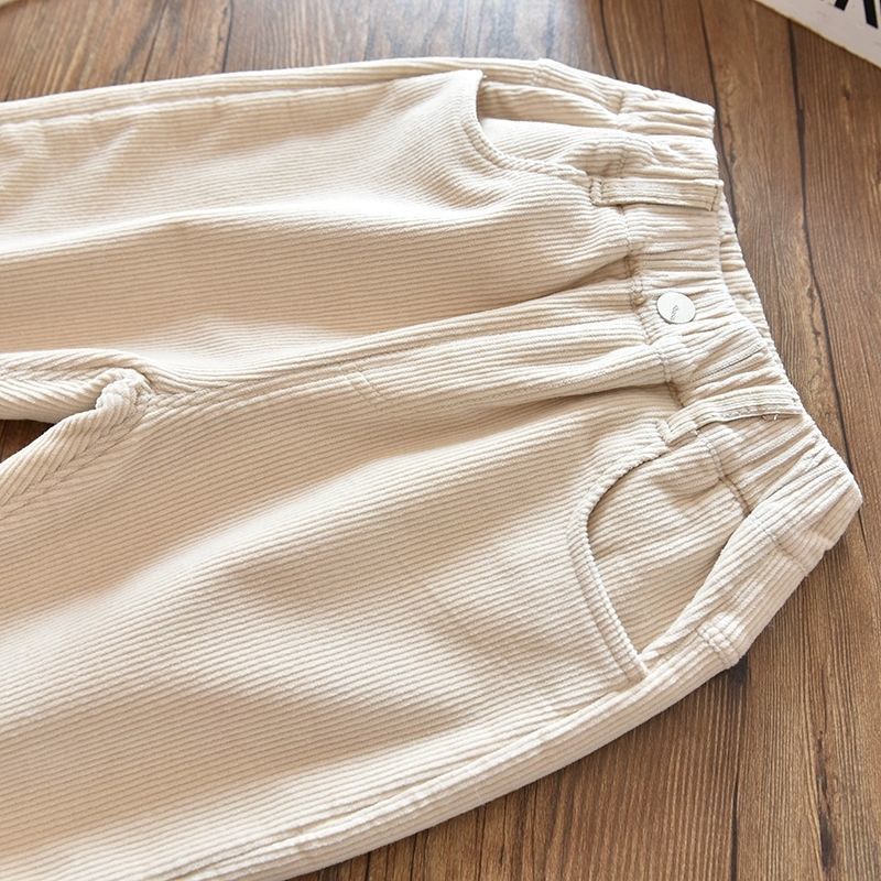 소녀 소년 바지 가을과 겨울 바깥 옷 기모 두꺼운 새 어린이 코듀로이 바지 느슨한 캐주얼 서양식 폭발