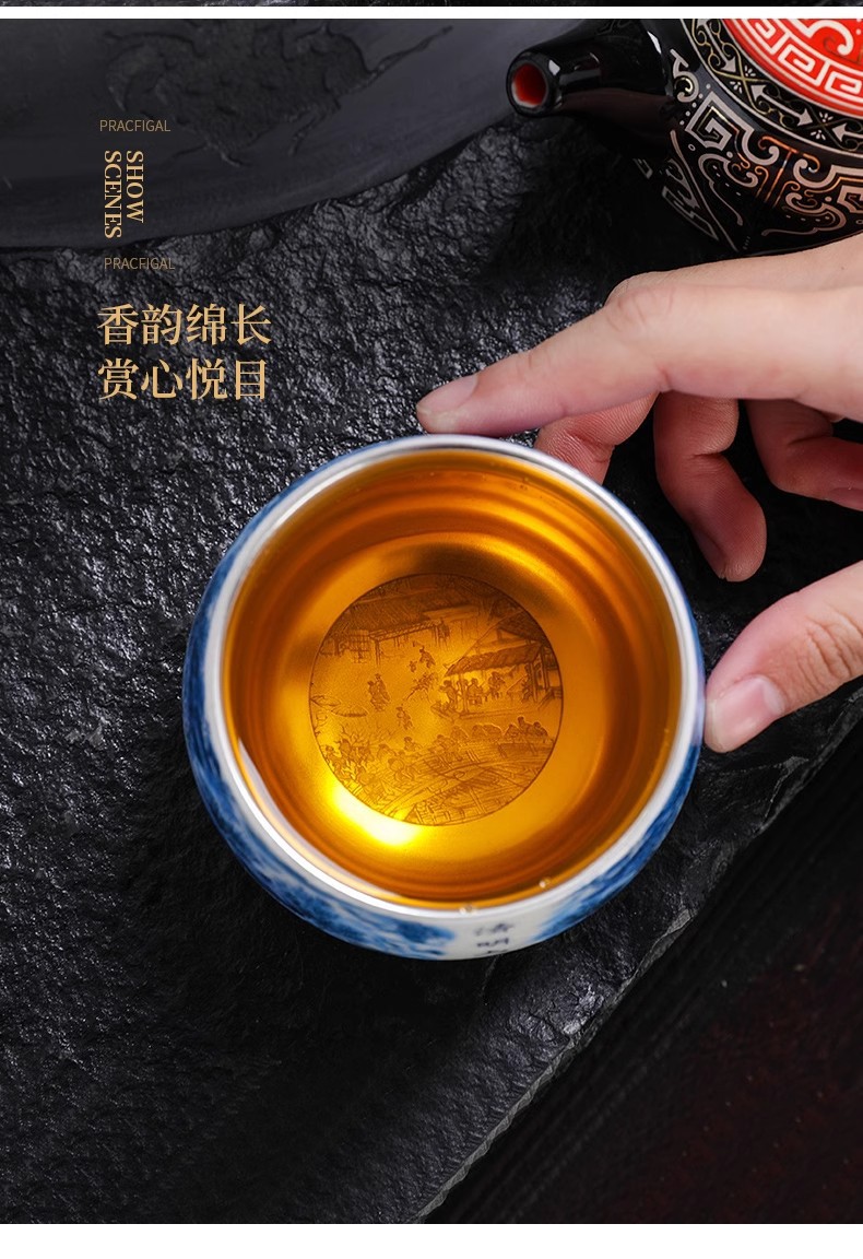 매트 지방 옥 실버 아랍어 컵 중국 칭밍 상하이 그림 티 컵 고급 차 시음 컵 개인 마스터 컵스토어 가기