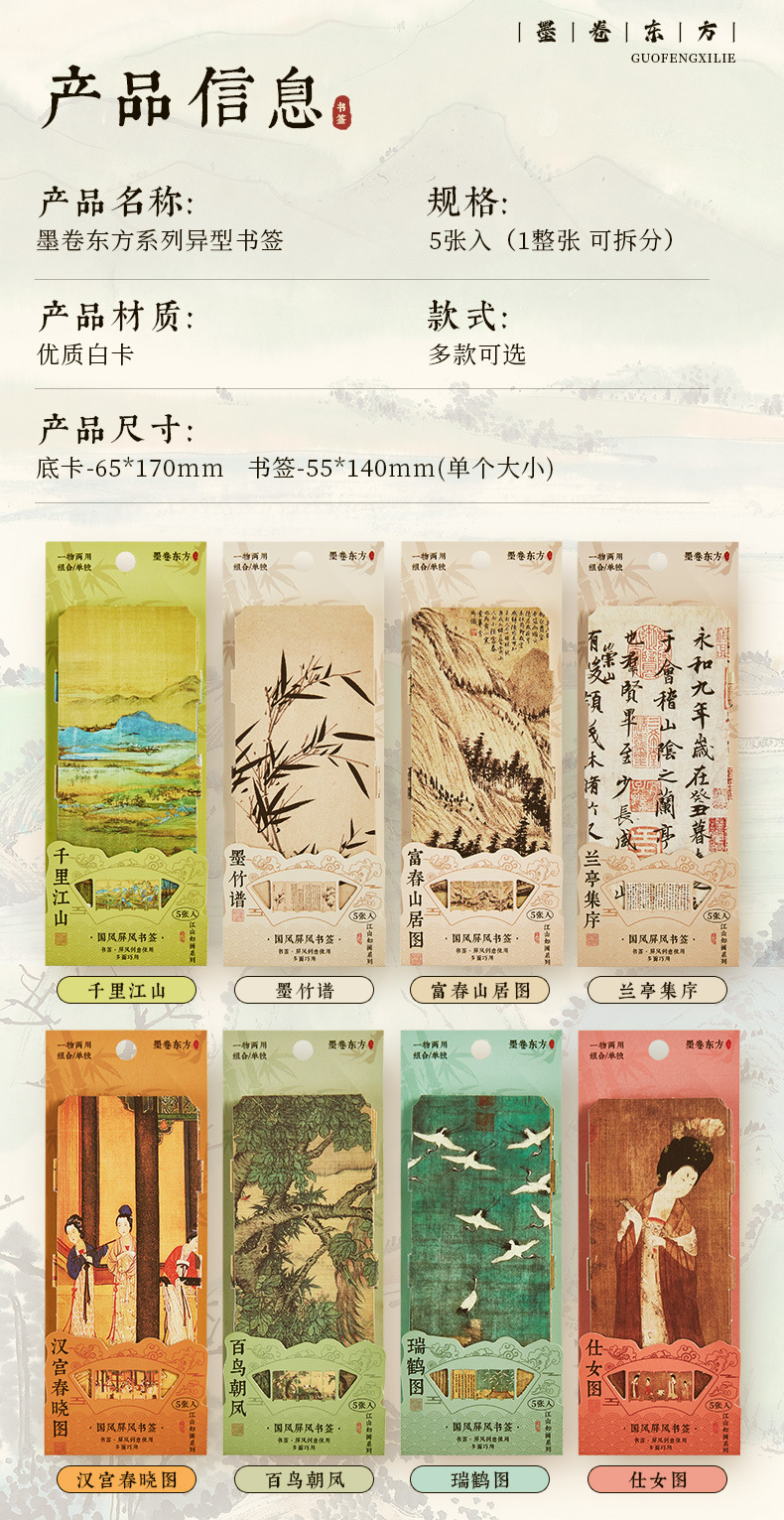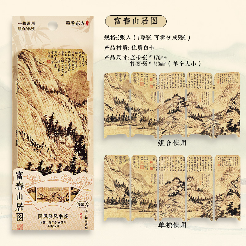 잉크 롤 동양 골동품 화면 책갈피 창조적 인 국가 조수 고전 서예 유명한 그림 텍스트 학생 독서 마크 카드스토어 가기