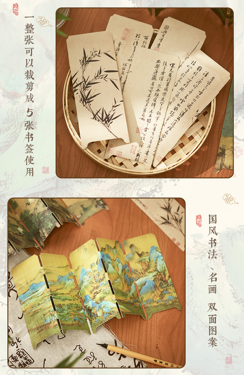 잉크 롤 동양 골동품 화면 책갈피 창조적 인 국가 조수 고전 서예 유명한 그림 텍스트 학생 독서 마크 카드