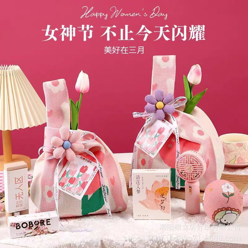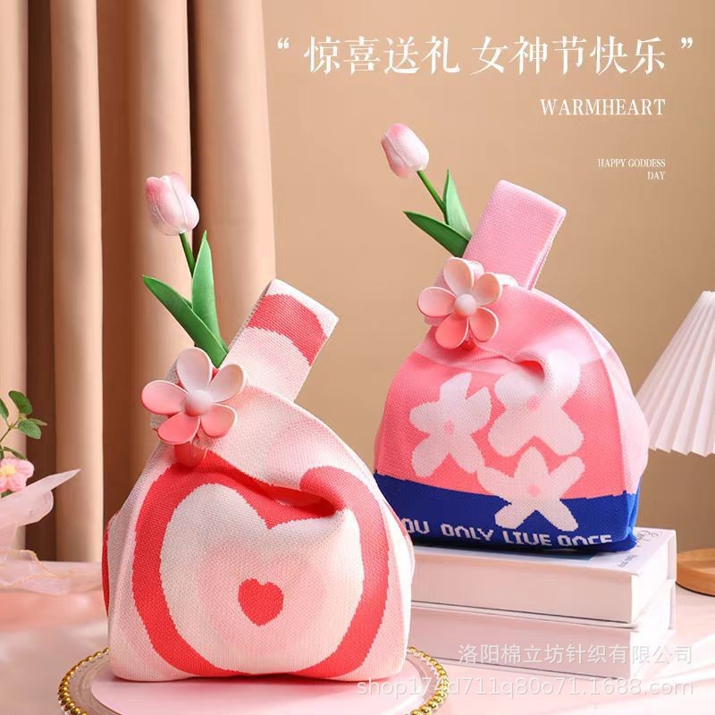 자수 니트 가방 여성의 날 선물 가방 짠 손목 가방 환경 보호 가방 여신 축제 선물 가방 여성 가방