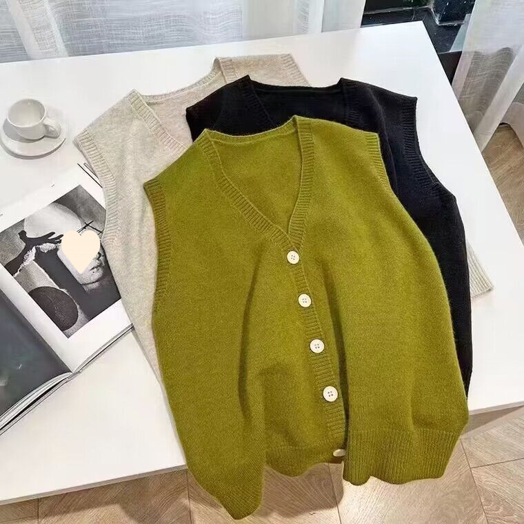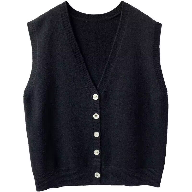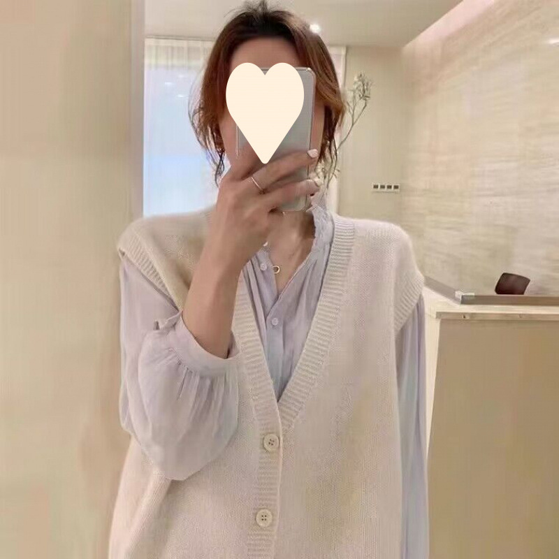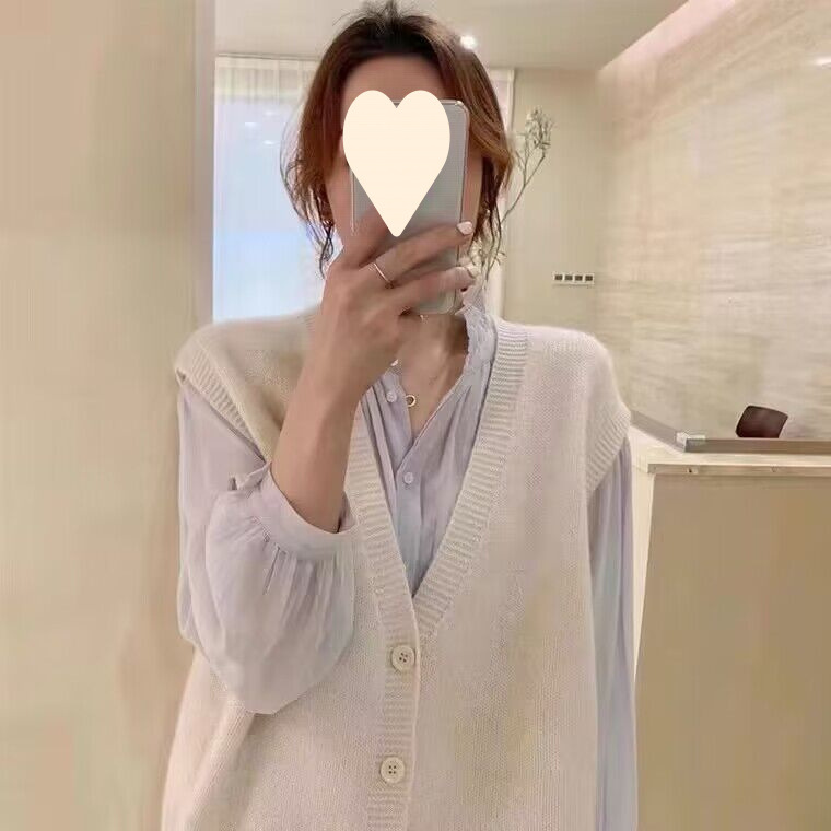 한국식 느슨한 캐주얼 V넥 조끼 니트 조끼 여성 가을 서양식 연령 감소 조끼 여성 아우터 카디건