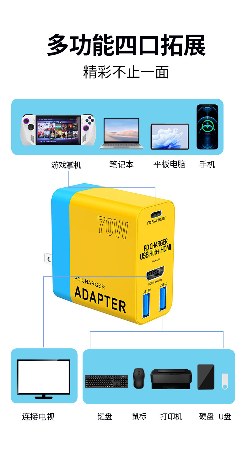 새로운 휴대용 충전 베이스 충전기 갈륨 질화물 연결 TV 화면 디스플레이 도킹 스테이션 HUB 컨버터