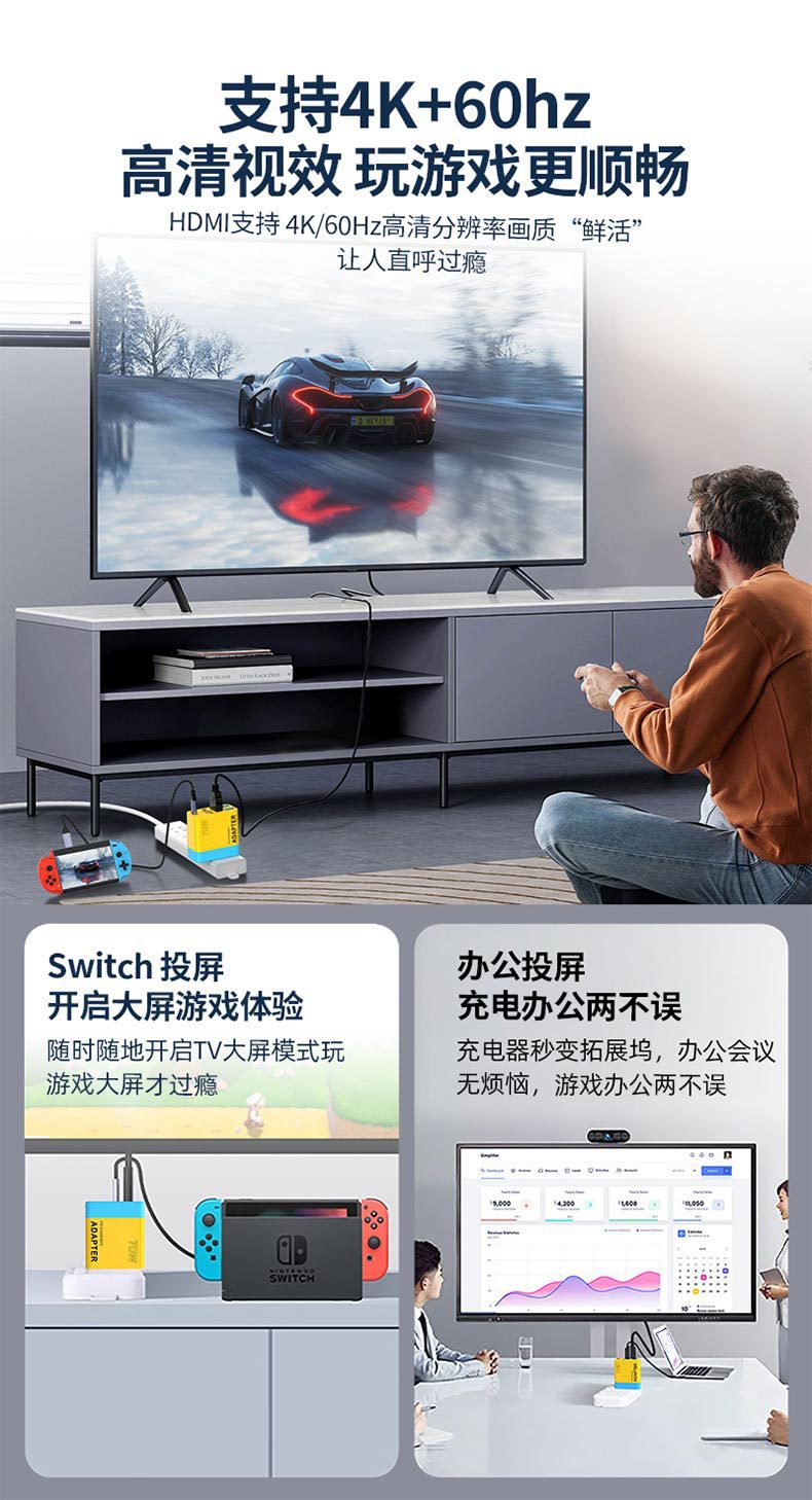 새로운 휴대용 충전 베이스 충전기 갈륨 질화물 연결 TV 화면 디스플레이 도킹 스테이션 HUB 컨버터스토어 가기