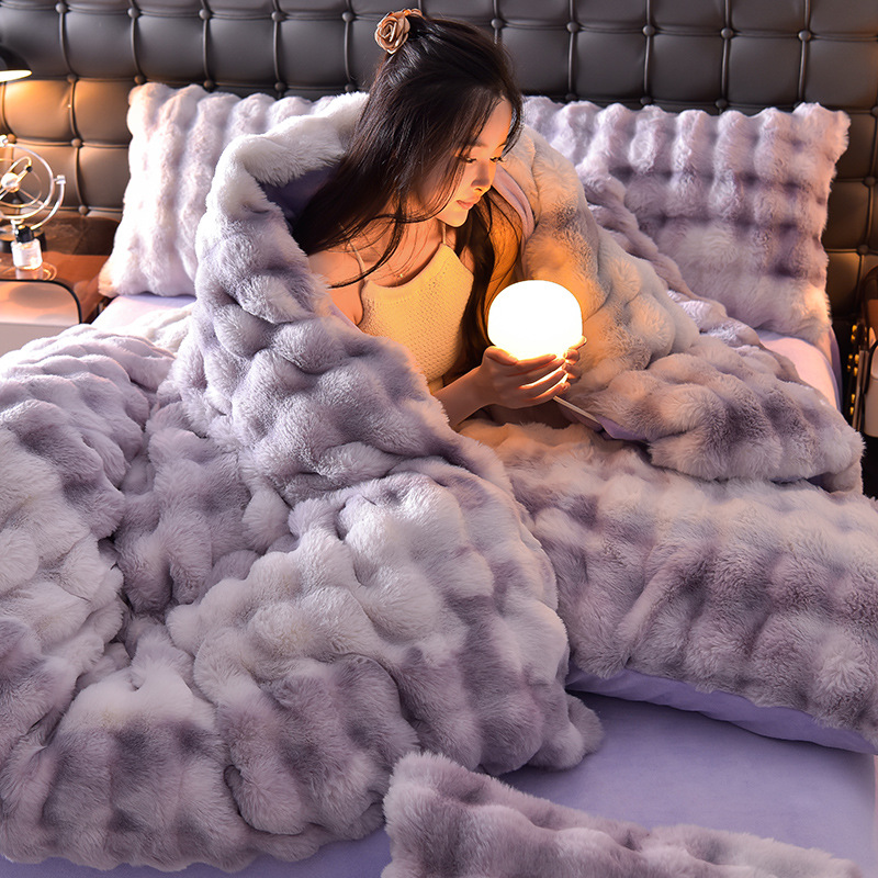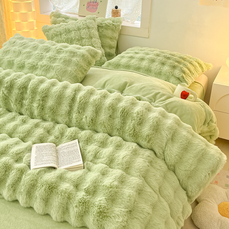 가벼운 고급 토끼 벨벳 4 조각 우유 벨벳 침대 두꺼운 양면 산호 벨벳 가을 및 겨울 침대 시트 퀼트 커버 라이브 폭발