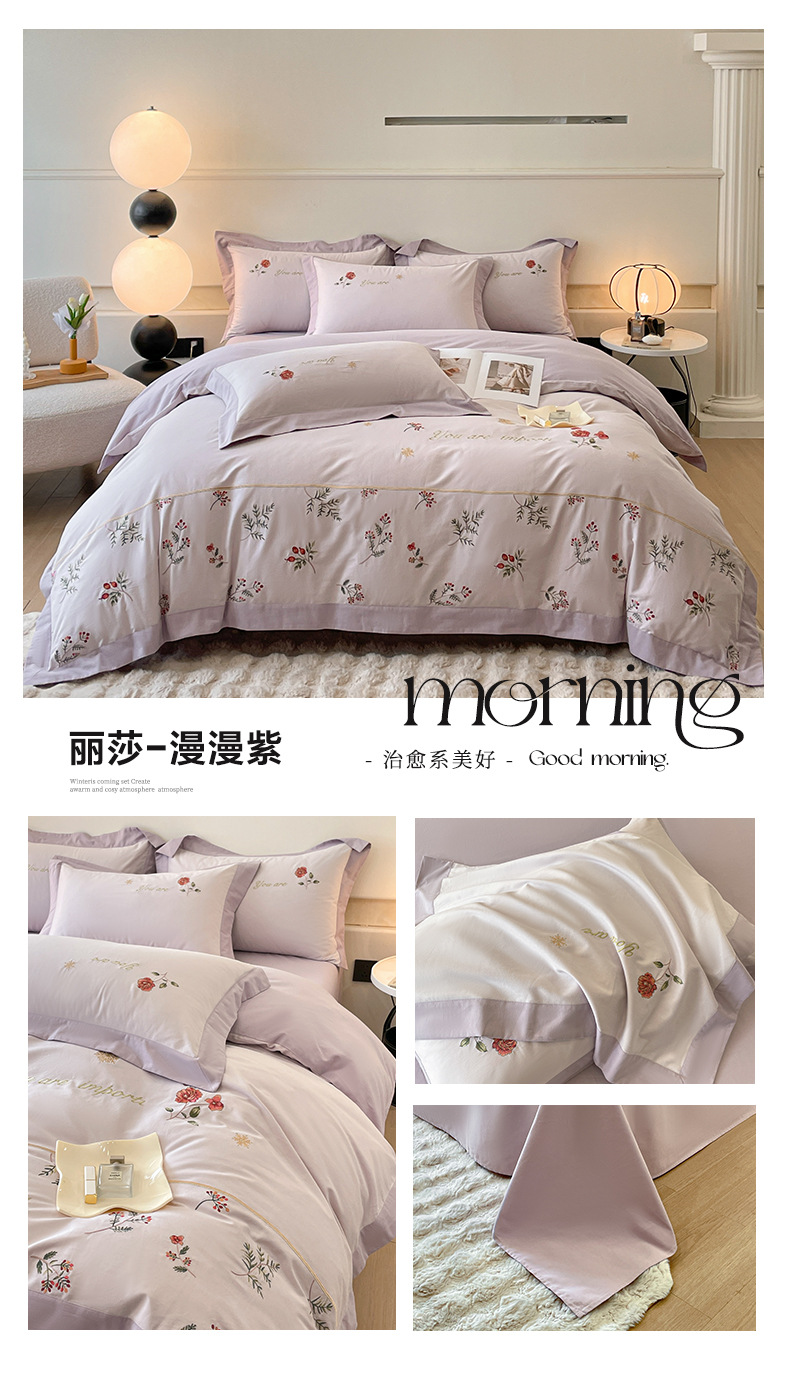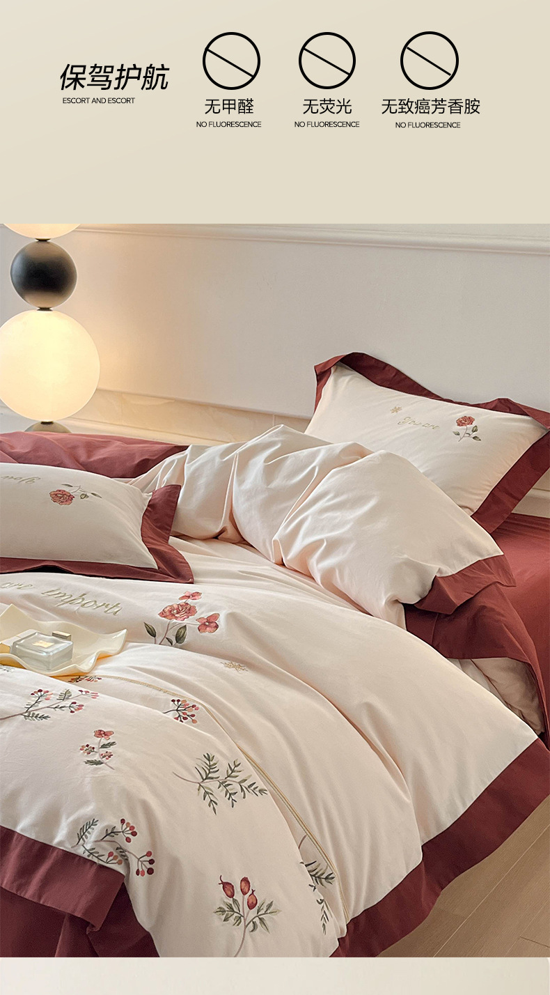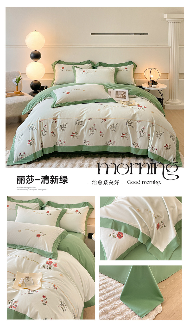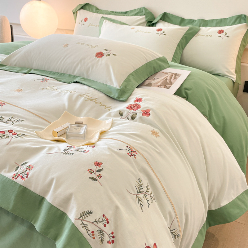 클래스 A 모성 및 유아 학년 가을과 겨울 두꺼운 면화 샌딩 4 피스 자수 꽃 퀼트 커버 가벼운 고급 면화 침구