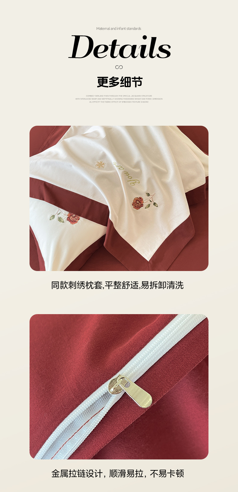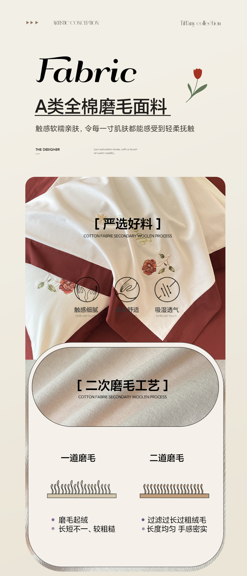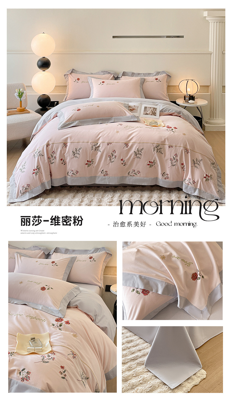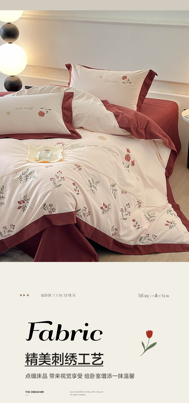 클래스 A 모성 및 유아 학년 가을과 겨울 두꺼운 면화 샌딩 4 피스 자수 꽃 퀼트 커버 가벼운 고급 면화 침구