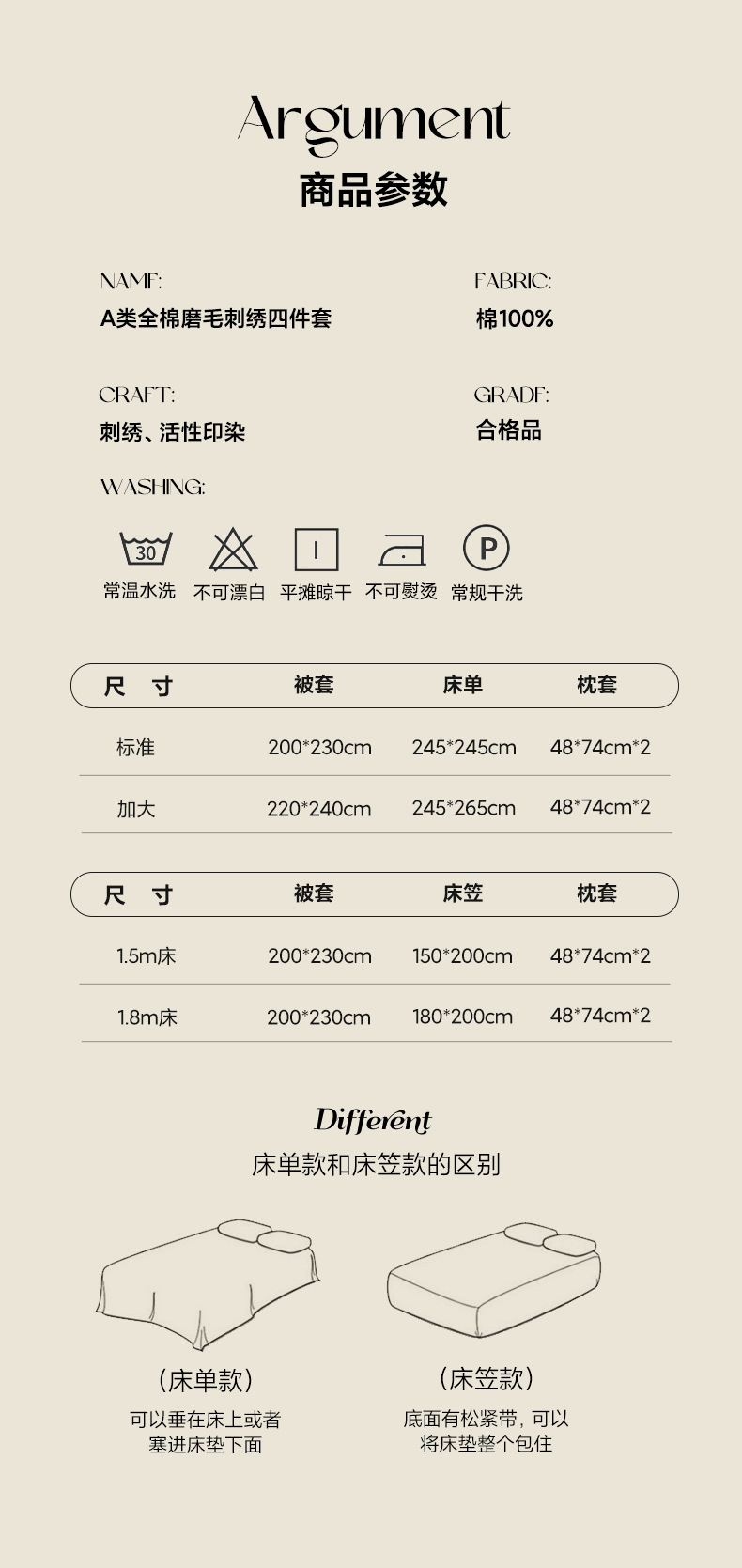 • 1.8m 침대 시트 4장 세트[이불커버 200*230cm]