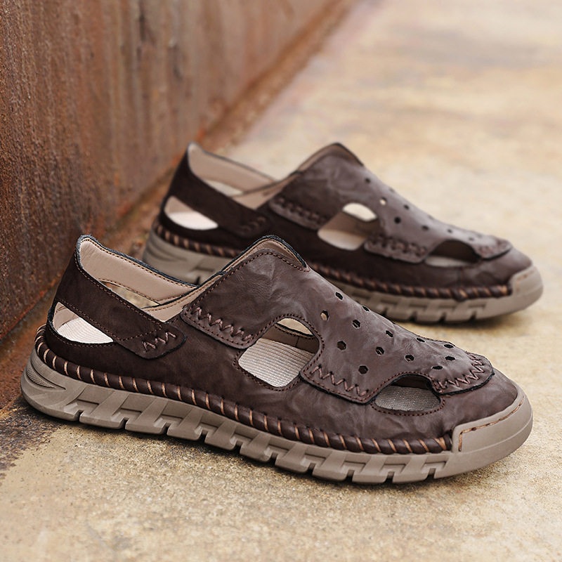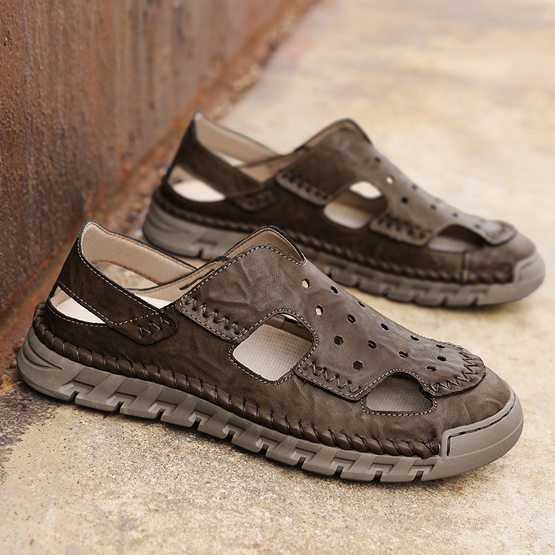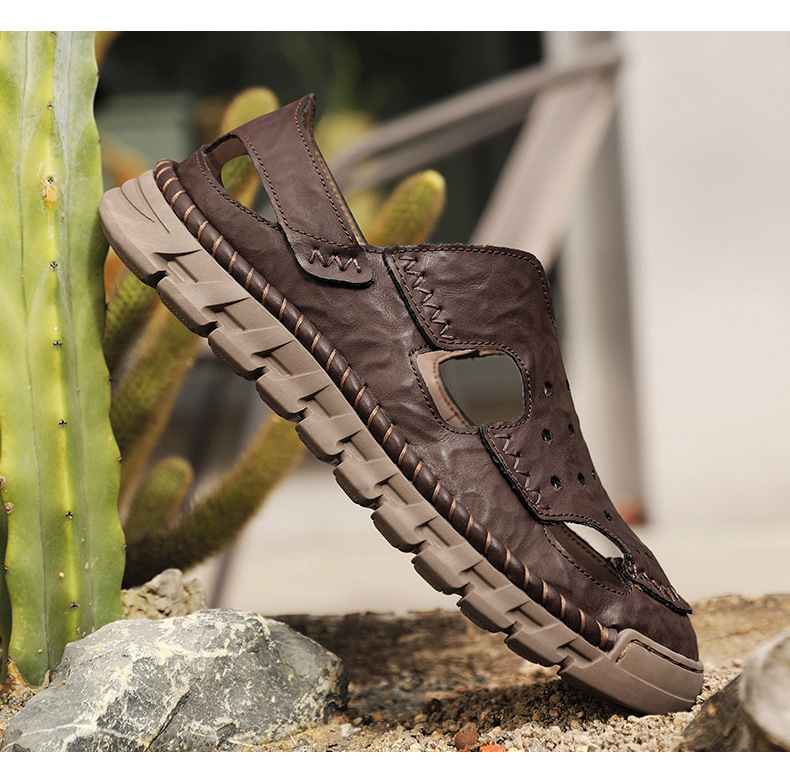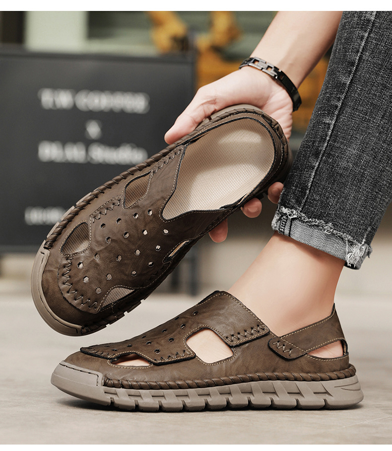 남성용 Baotou 샌들 여름 새로운 플랫 미끄럼 방지 내마모성 중공 통기성 아우터 투 웨어 샌들 및 슬리퍼 홀 슈즈
