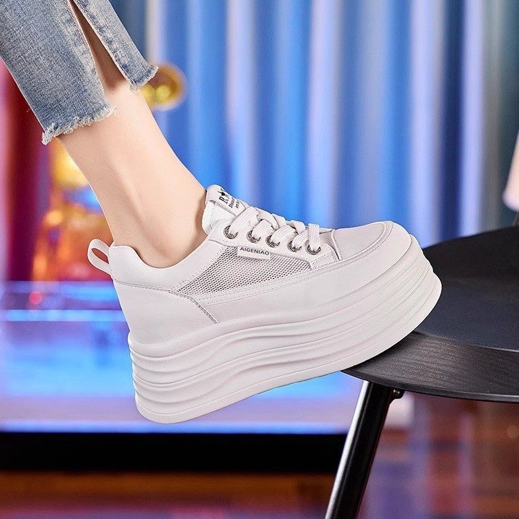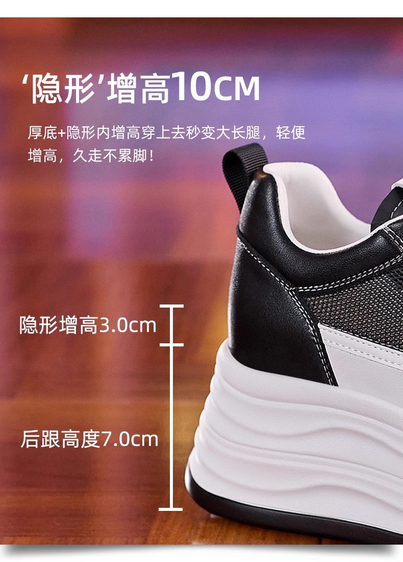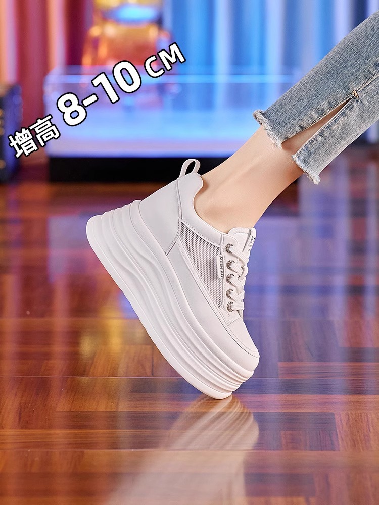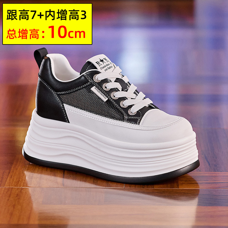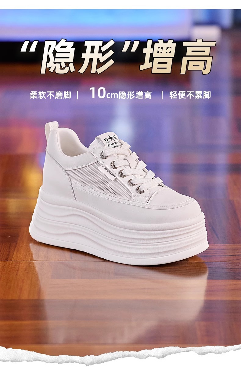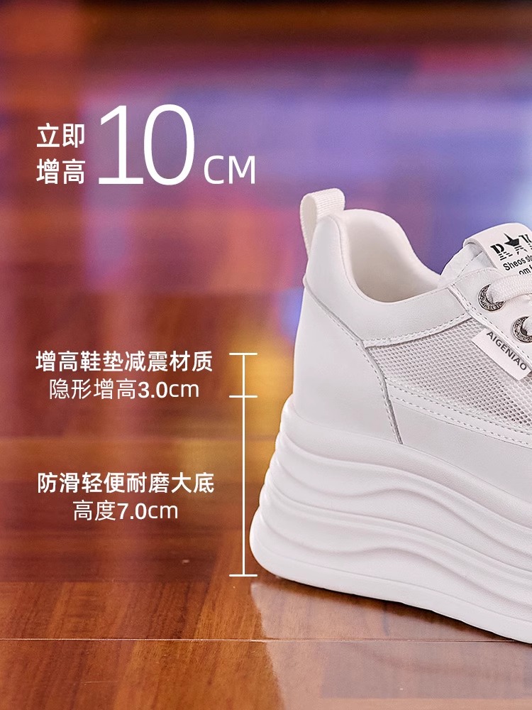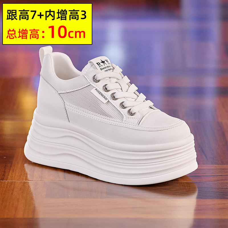 인터넷, 10CM 보이지 않는 높이 증가 화이트 신발 여성의 2024 폭발 작은 두꺼운 바닥 플랫폼 웨지 힐 통기성 신발