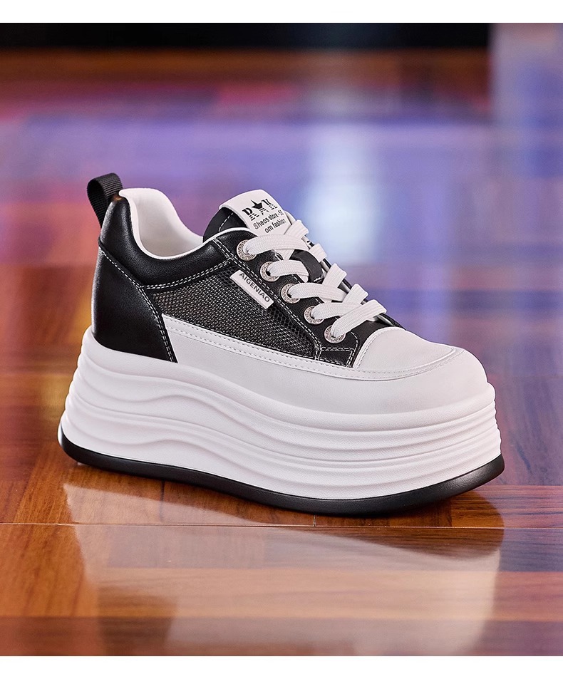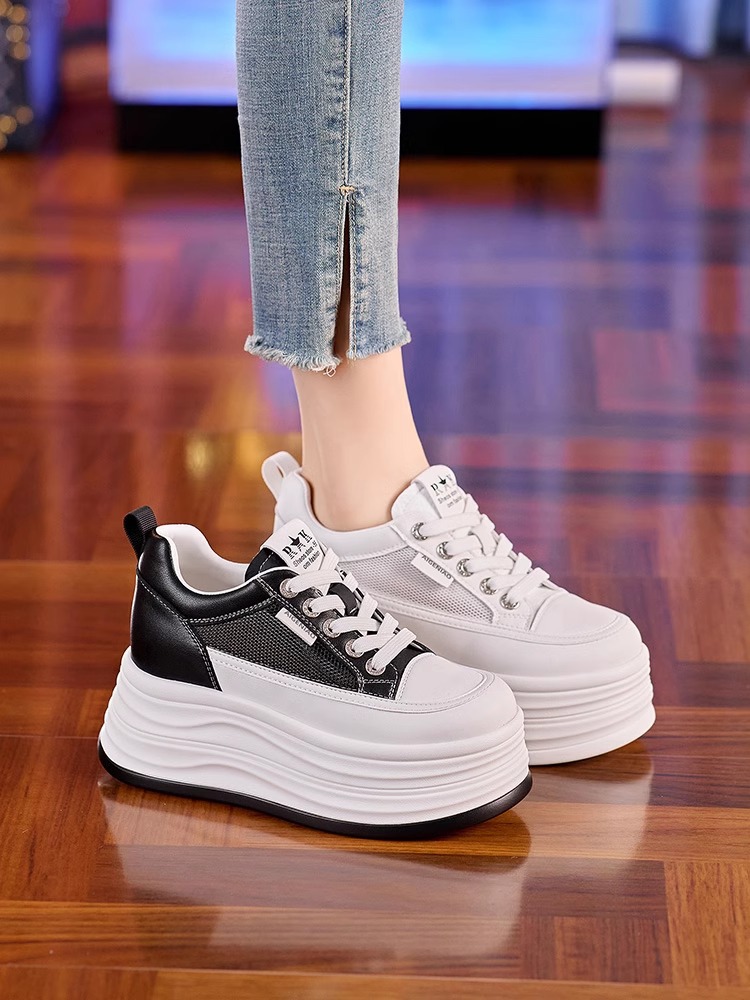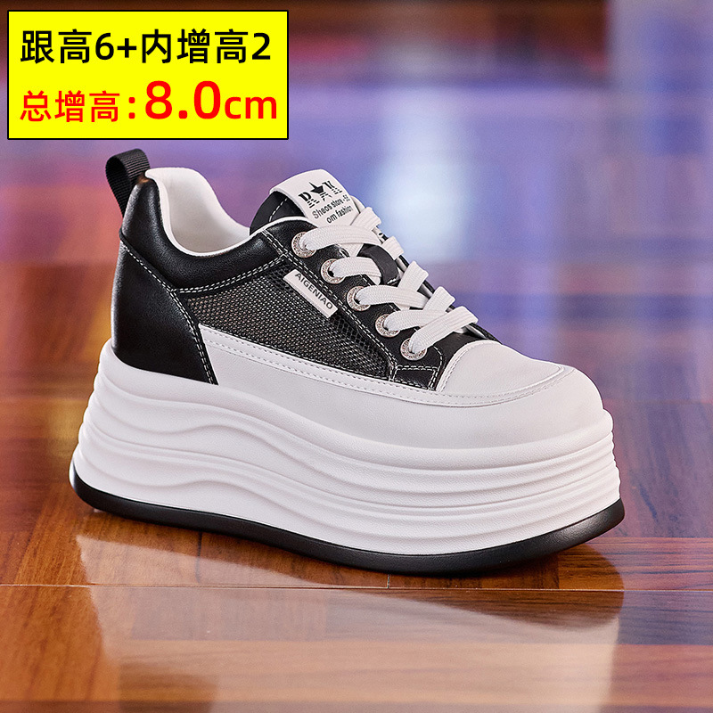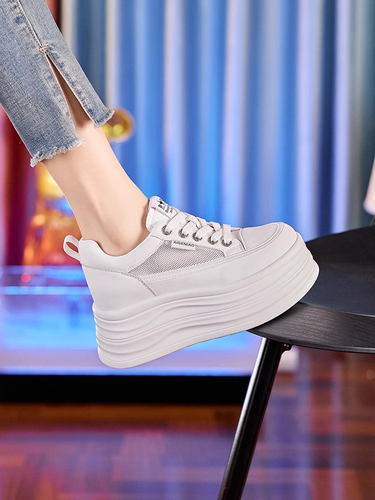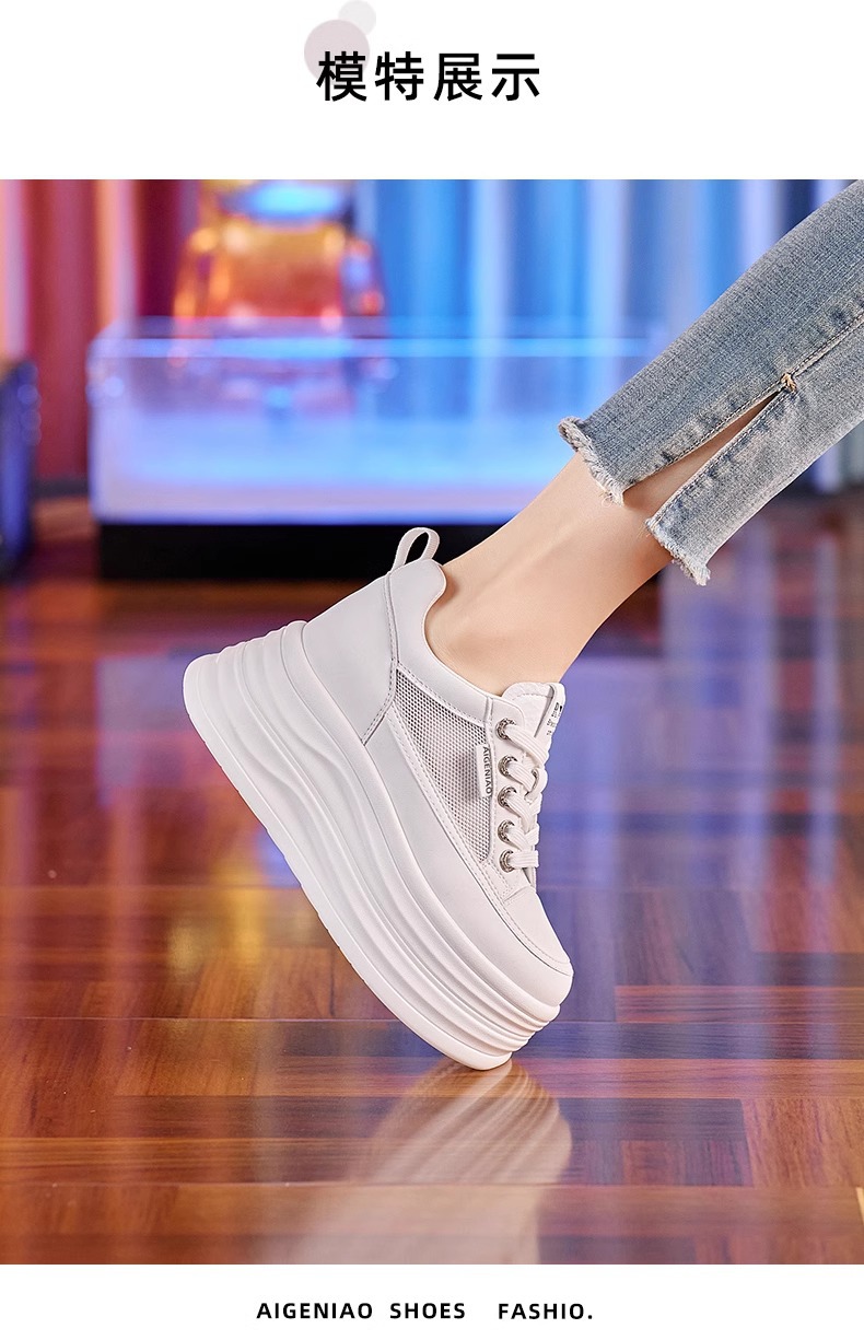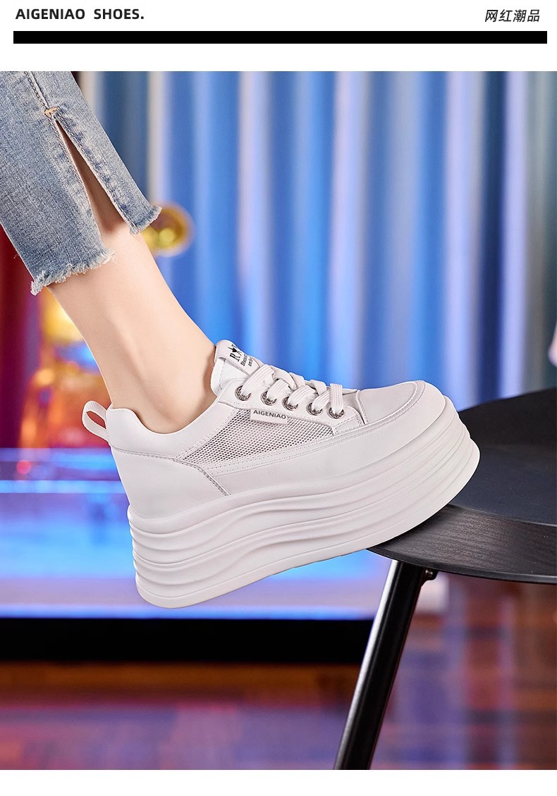 인터넷, 10CM 보이지 않는 높이 증가 화이트 신발 여성의 2024 폭발 작은 두꺼운 바닥 플랫폼 웨지 힐 통기성 신발