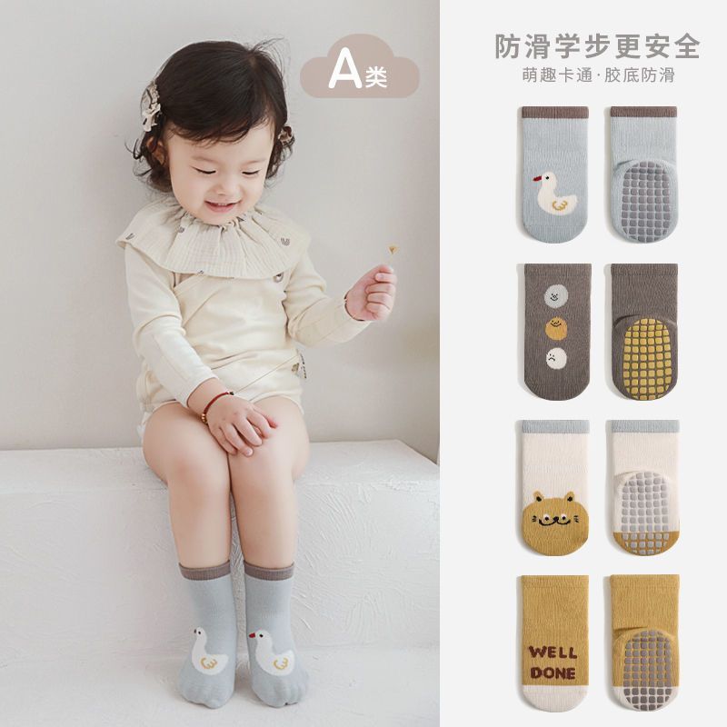 아기 양말 만화 캐릭터 면 미끄럼 방지 걸음마 양말 봄 가을 겨울 유아 실내 중목 양말 도매스토어 가기
