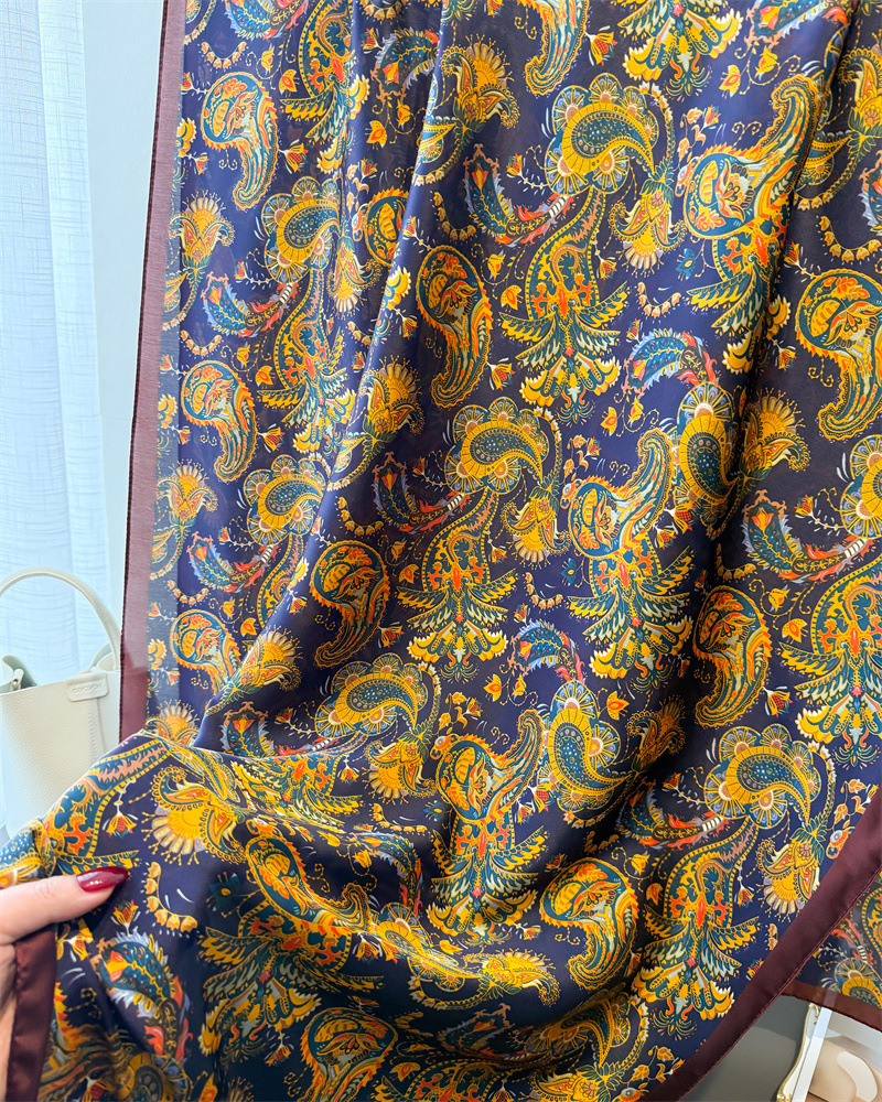 빈티지 캐슈 에뮬레이션 실키 브로케이드 패션 선스크린 스카프 긴 스카프 실크 인쇄 목도리 올 매치 헤드 스카프