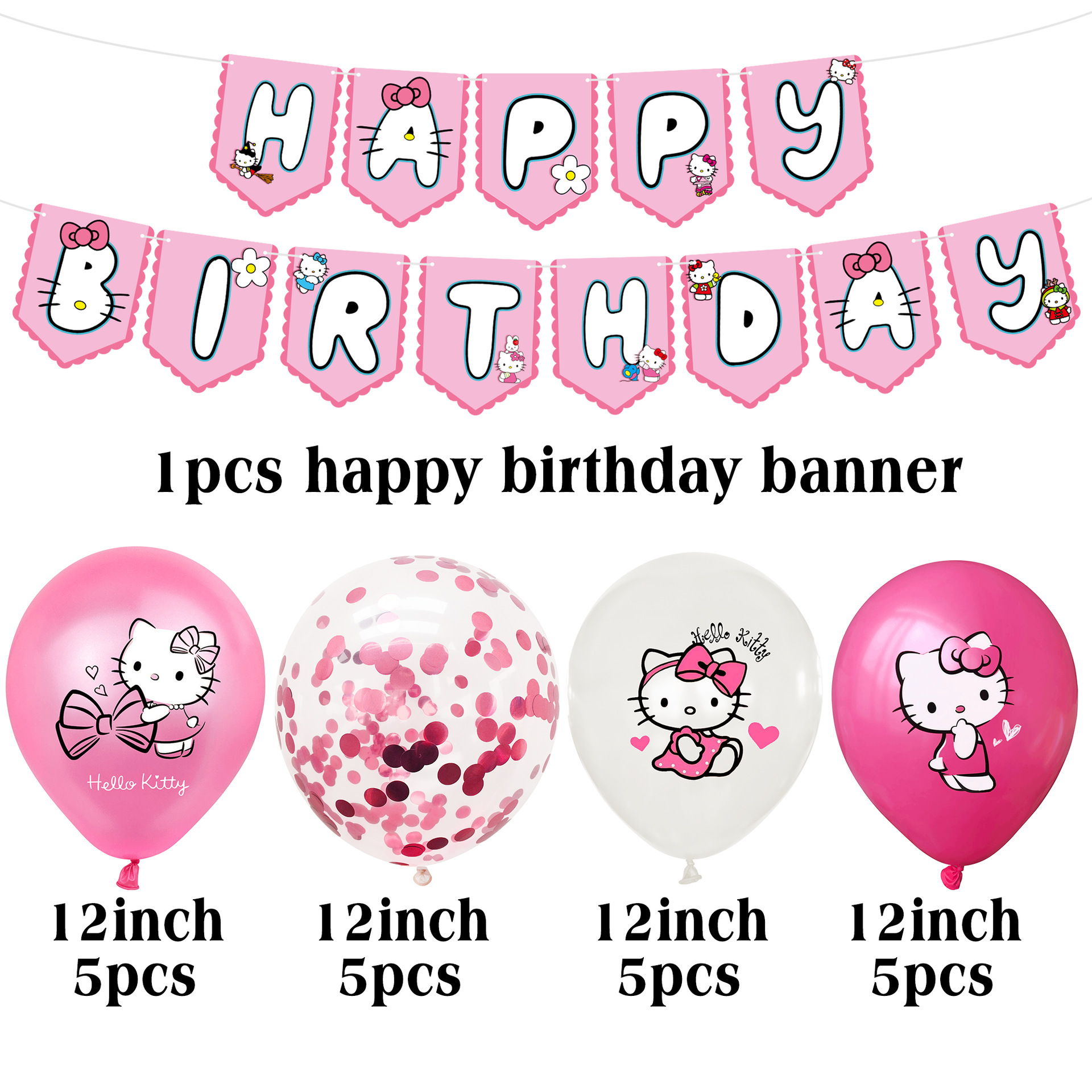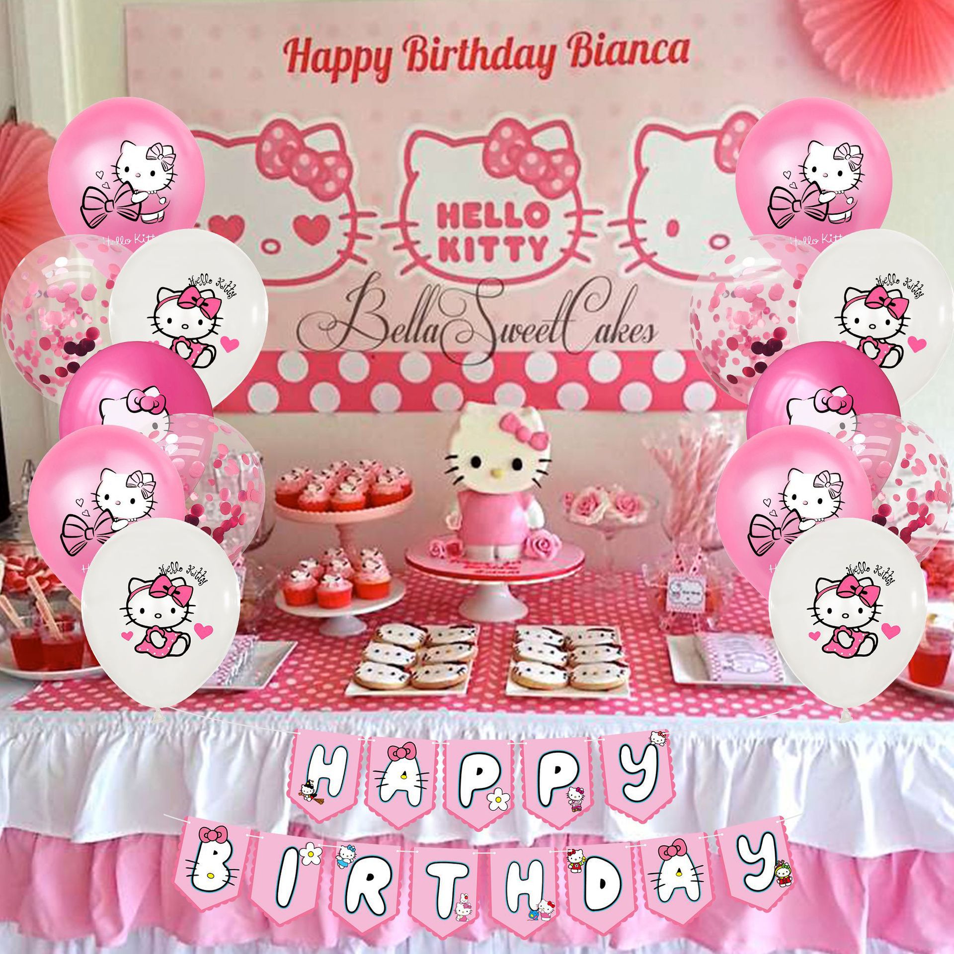만화 고양이 핑크 공주 가리 하트 생일 테마 풍선 장식 KT 고양이 헬로 키티 라텍스 풍선스토어 가기