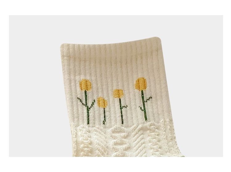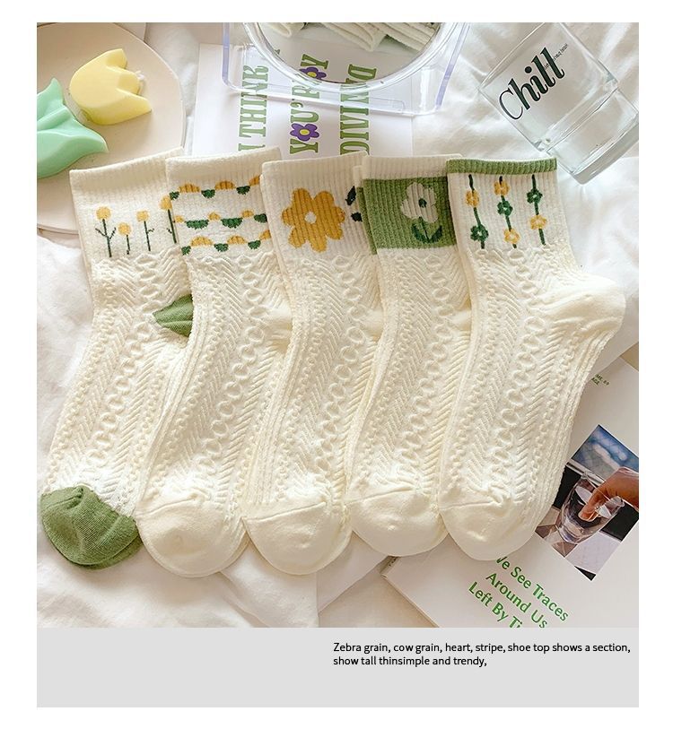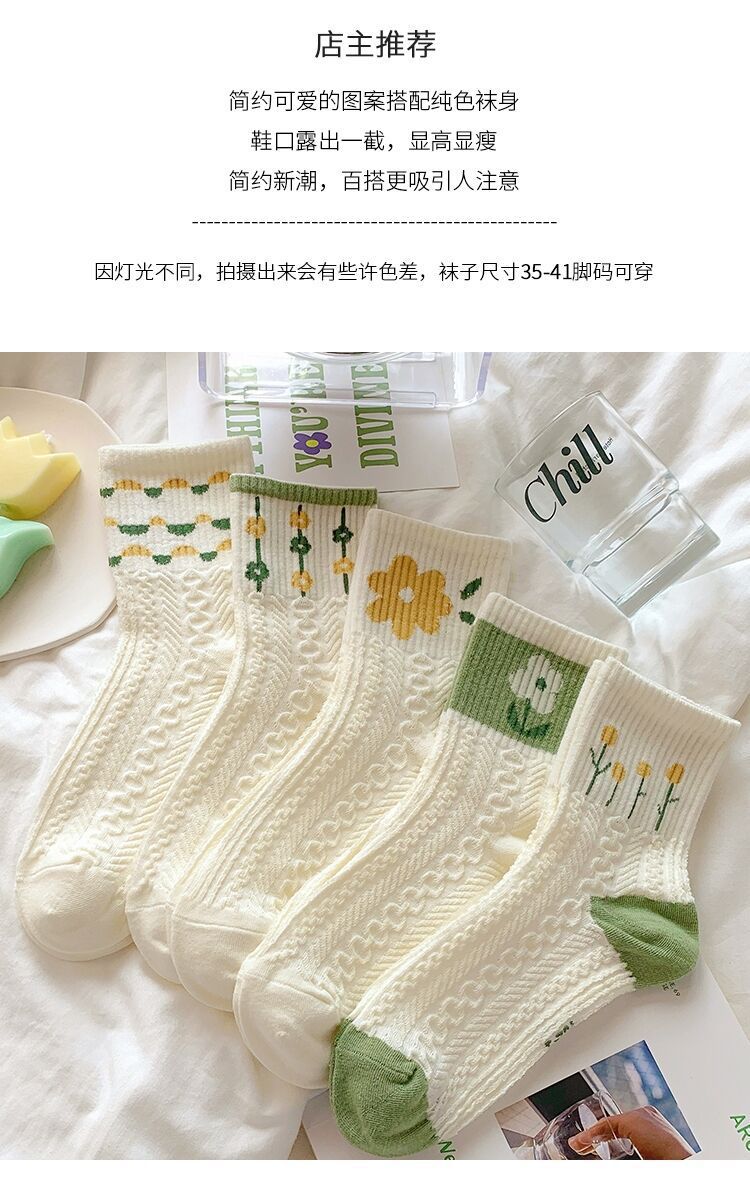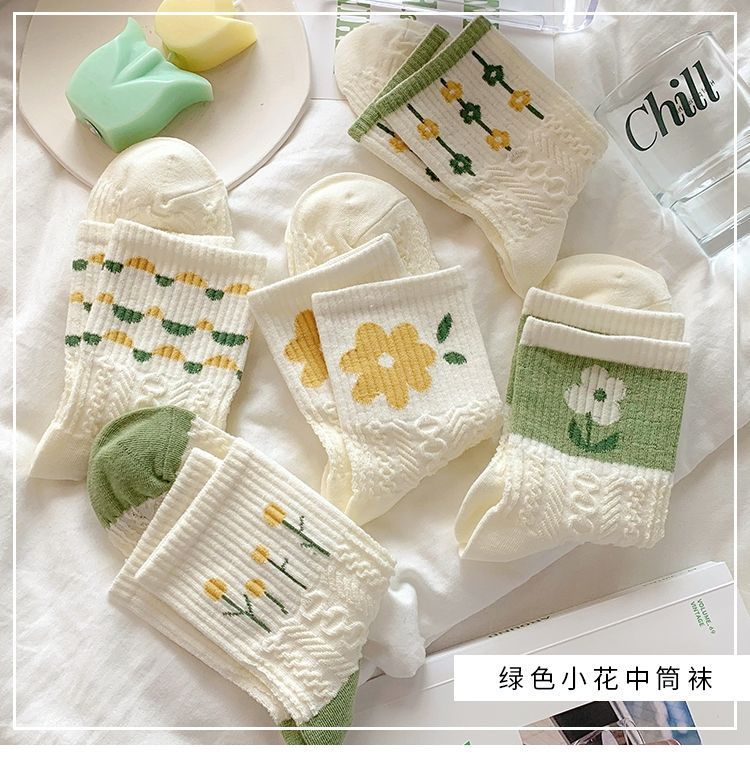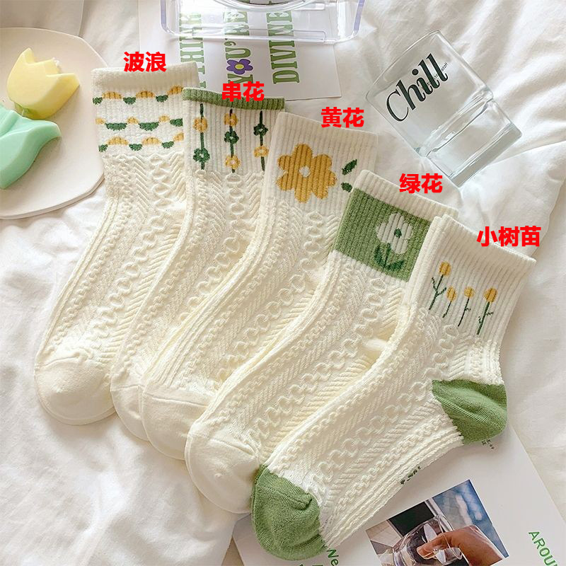 녹색 작은 꽃 양말 여성 중추절 여성 봄 및 가을 Ins 유행 일본 스타일 트위스트 학술 스타일 가을과 겨울 인터넷 빨간 양말스토어 가기