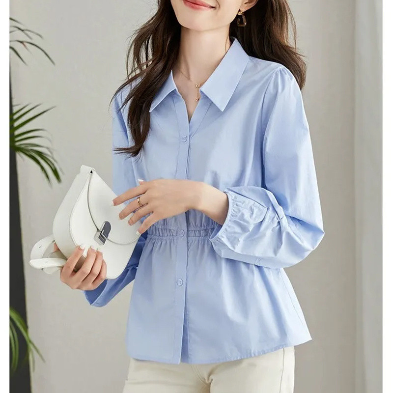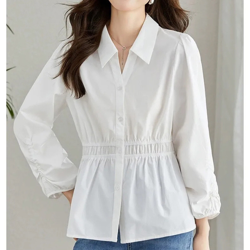 새로운 봄 긴 소매 셔츠 2025 패션 타이트 허리 디자인 우아한 슬림 룩 올 매치 셔츠 웨스턴 스타일 여성용 탑스토어 가기
