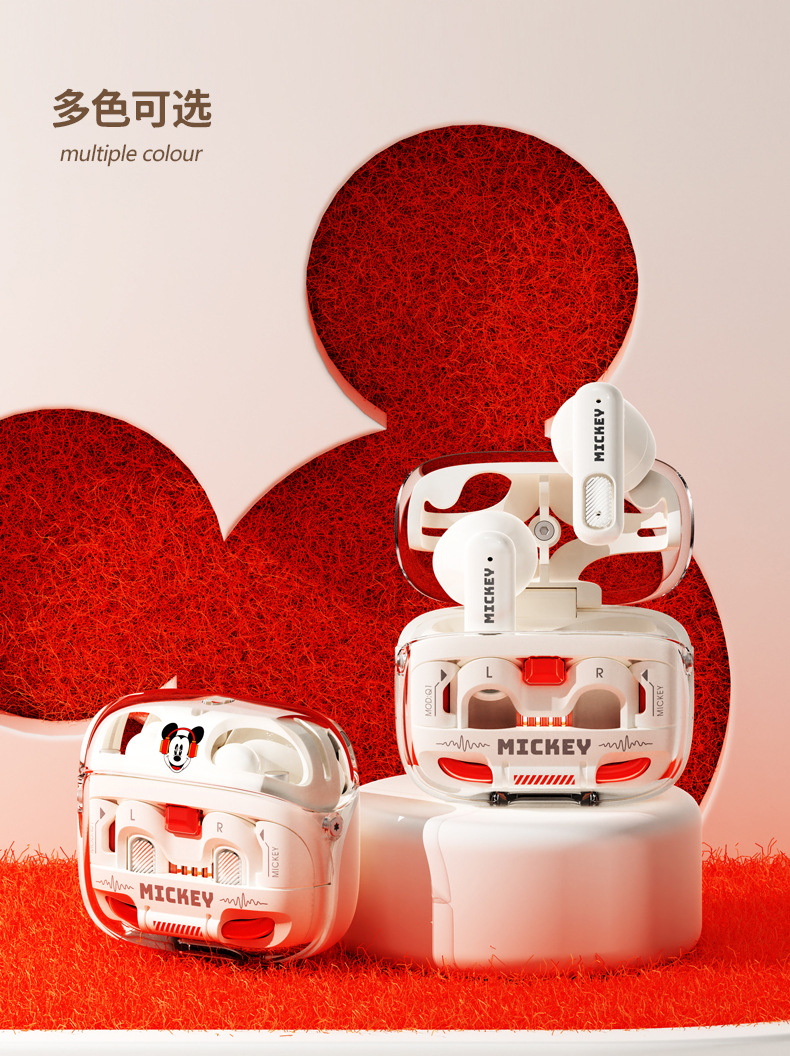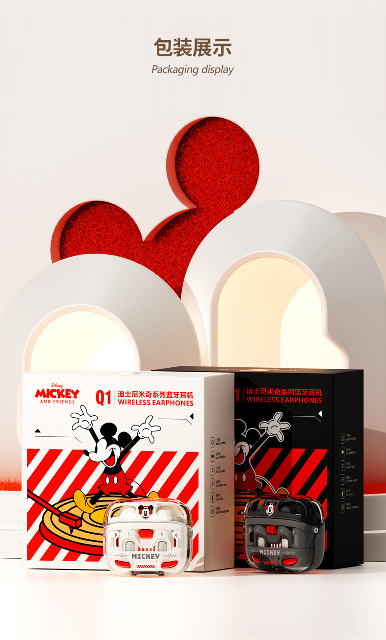 디즈니 블루투스 헤드셋 반 귀 Q1 미키 장기 착용 통증없는 낮은 지연 소음 감소 장기 배터리 수명 디지털 디스플레이스토어 가기