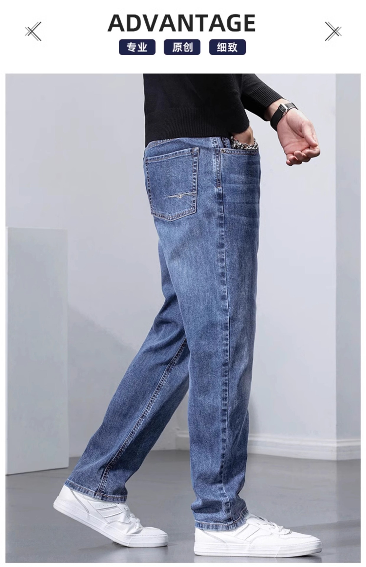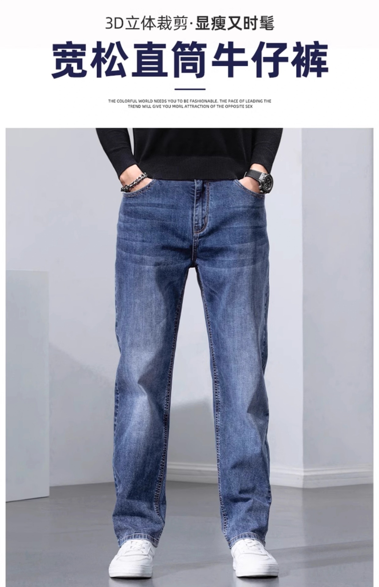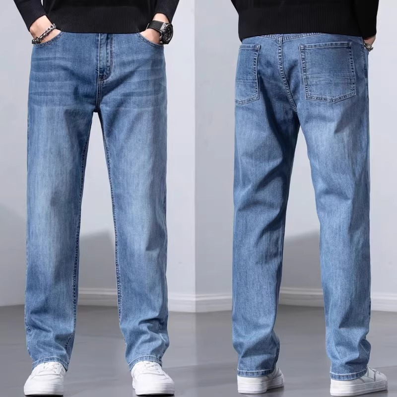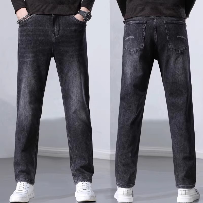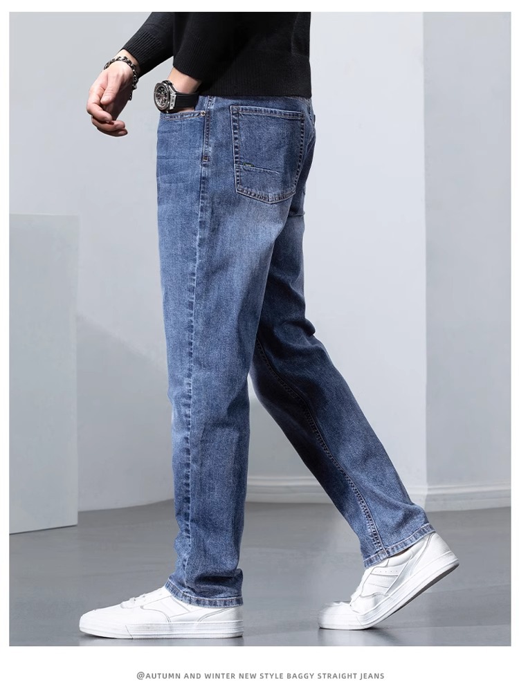 봄과 가을 청바지 남자의 느슨한 스트레이트 하이 엔드 스트레치 남자의 2025 새로운 캐주얼 긴 바지 남자의 가을스토어 가기