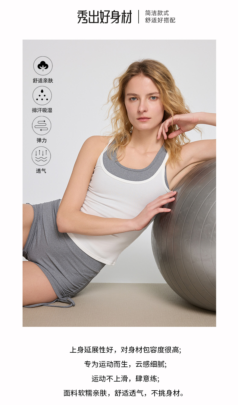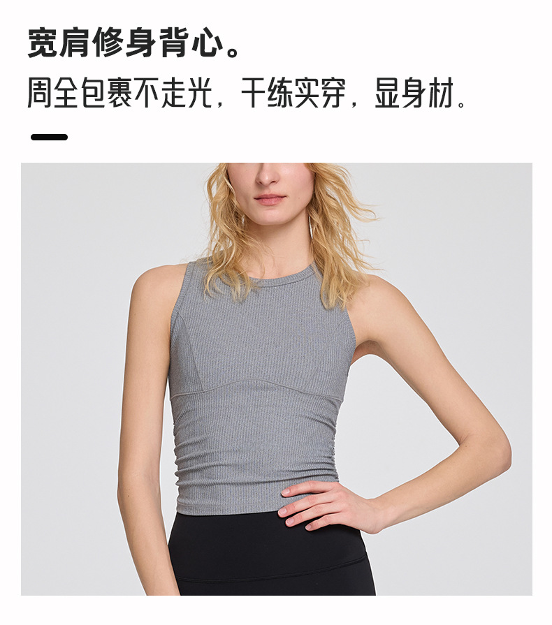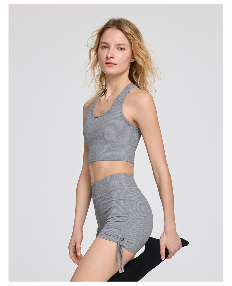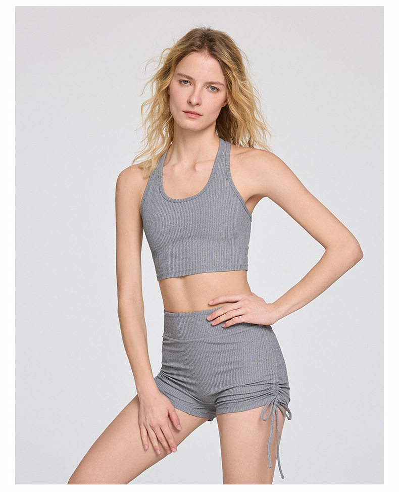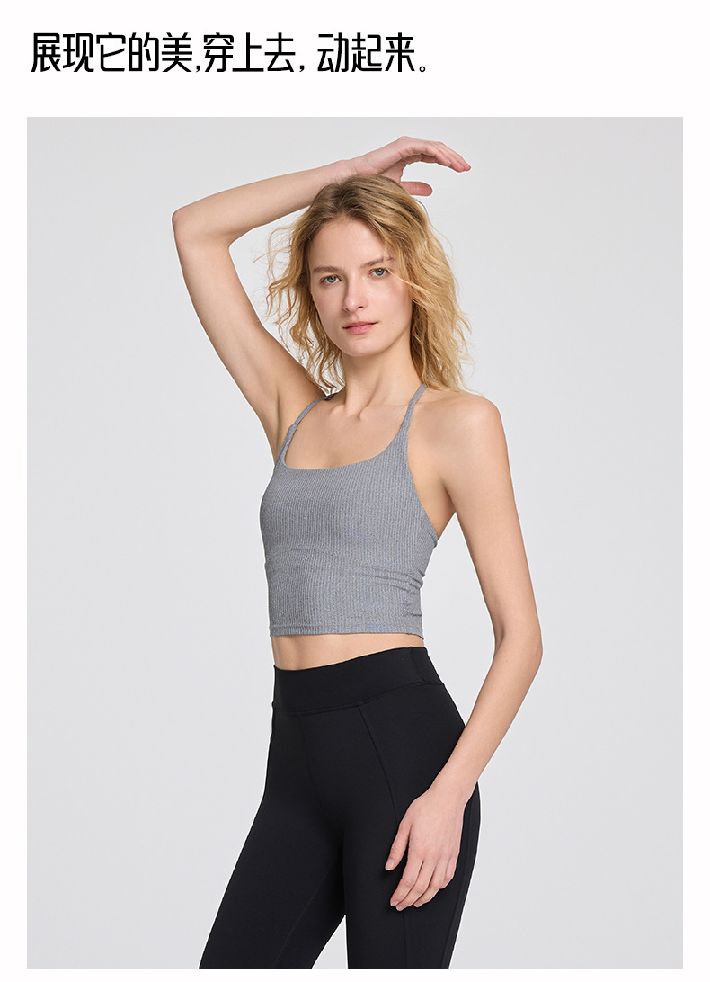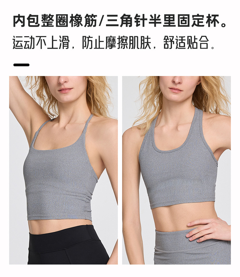 봄과 여름 2025 새로운 요가 착용 여성 회색 질감 스포츠 속옷 와이드 어깨 끈 고정 컵 타이트한 피트니스 착용스토어 가기