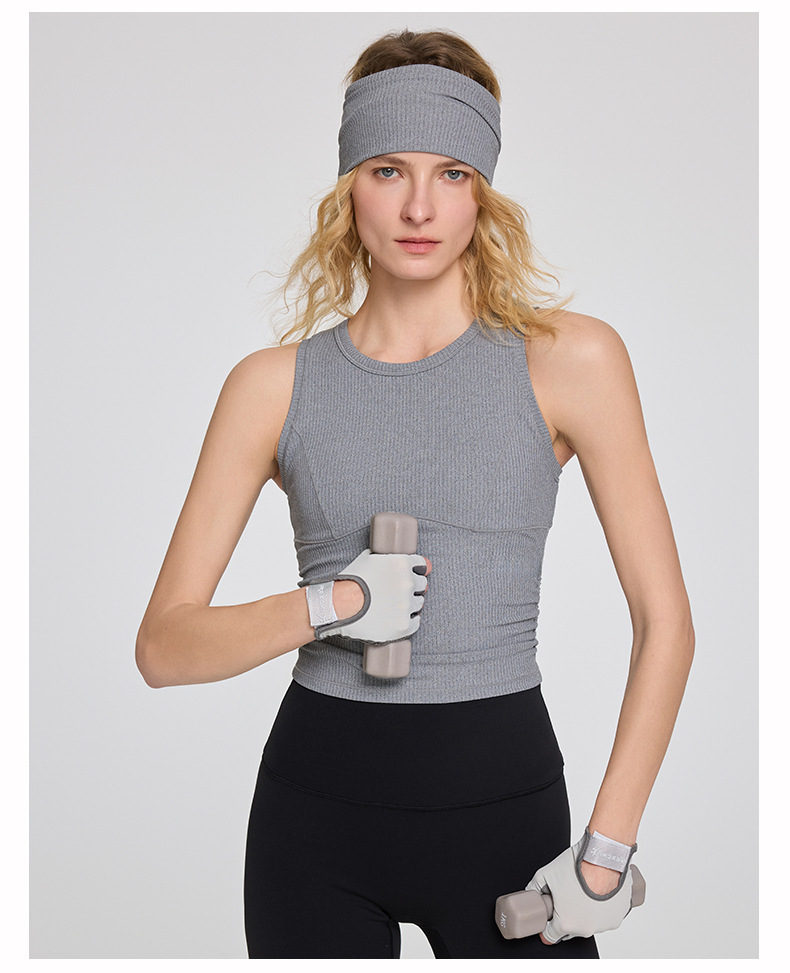 봄과 여름 2025 새로운 요가 착용 여성 회색 질감 스포츠 속옷 와이드 어깨 끈 고정 컵 타이트한 피트니스 착용