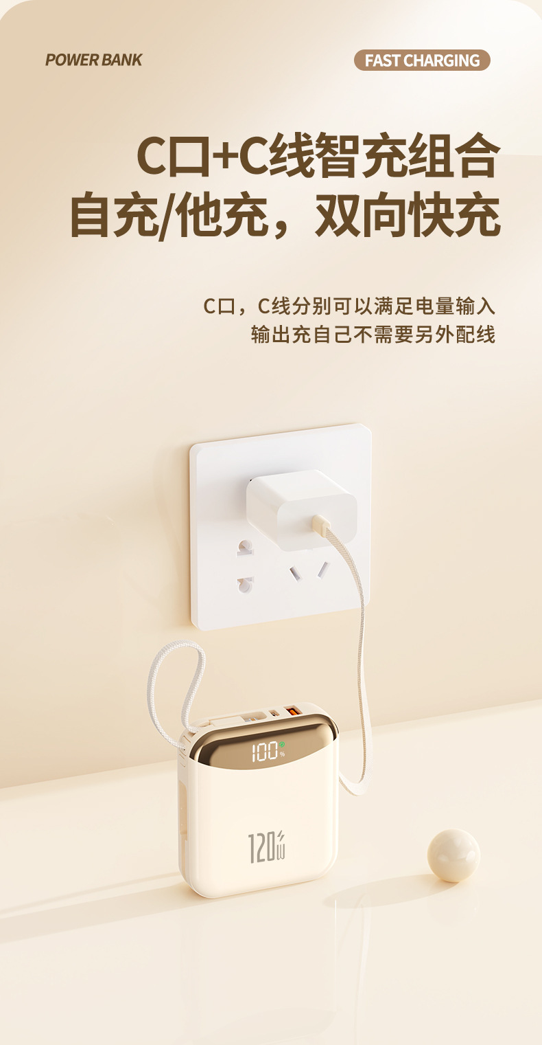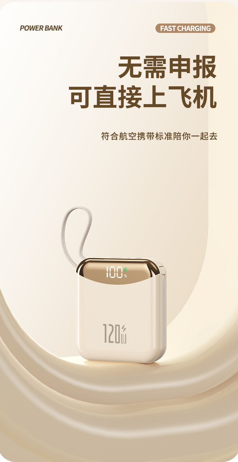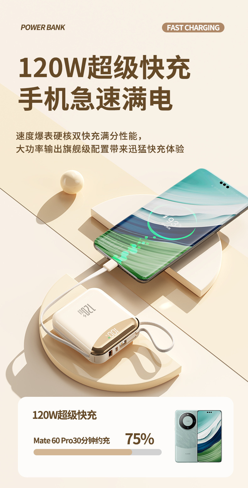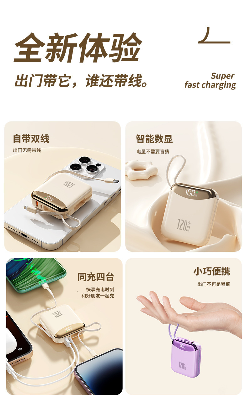 120W 슈퍼 빠른 충전 셀프 벨트 라인 20000 mA 대용량 소형 휴대용 충전 보물 휴대 전화 범용 전원 공급 장치스토어 가기