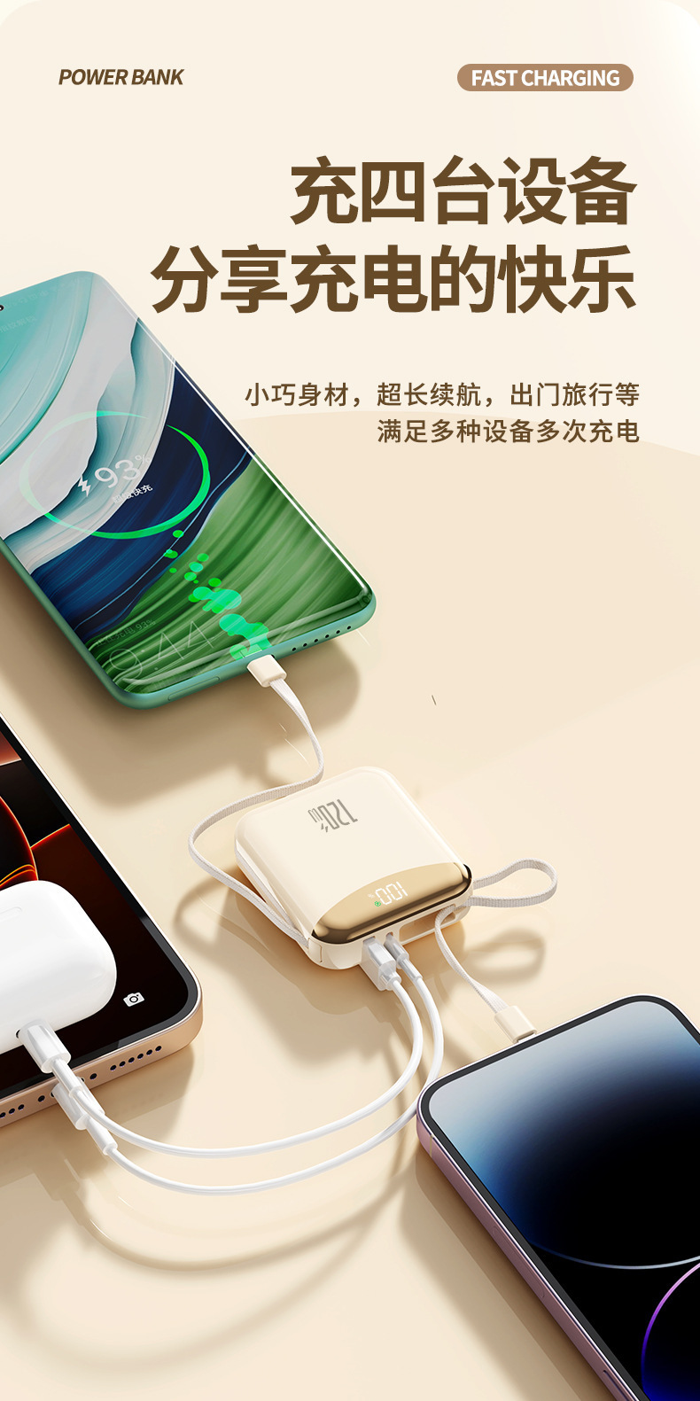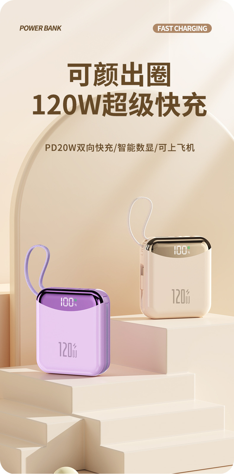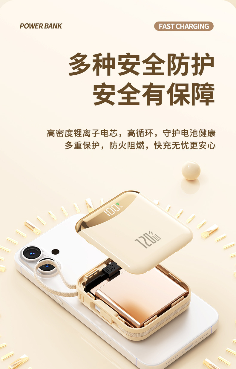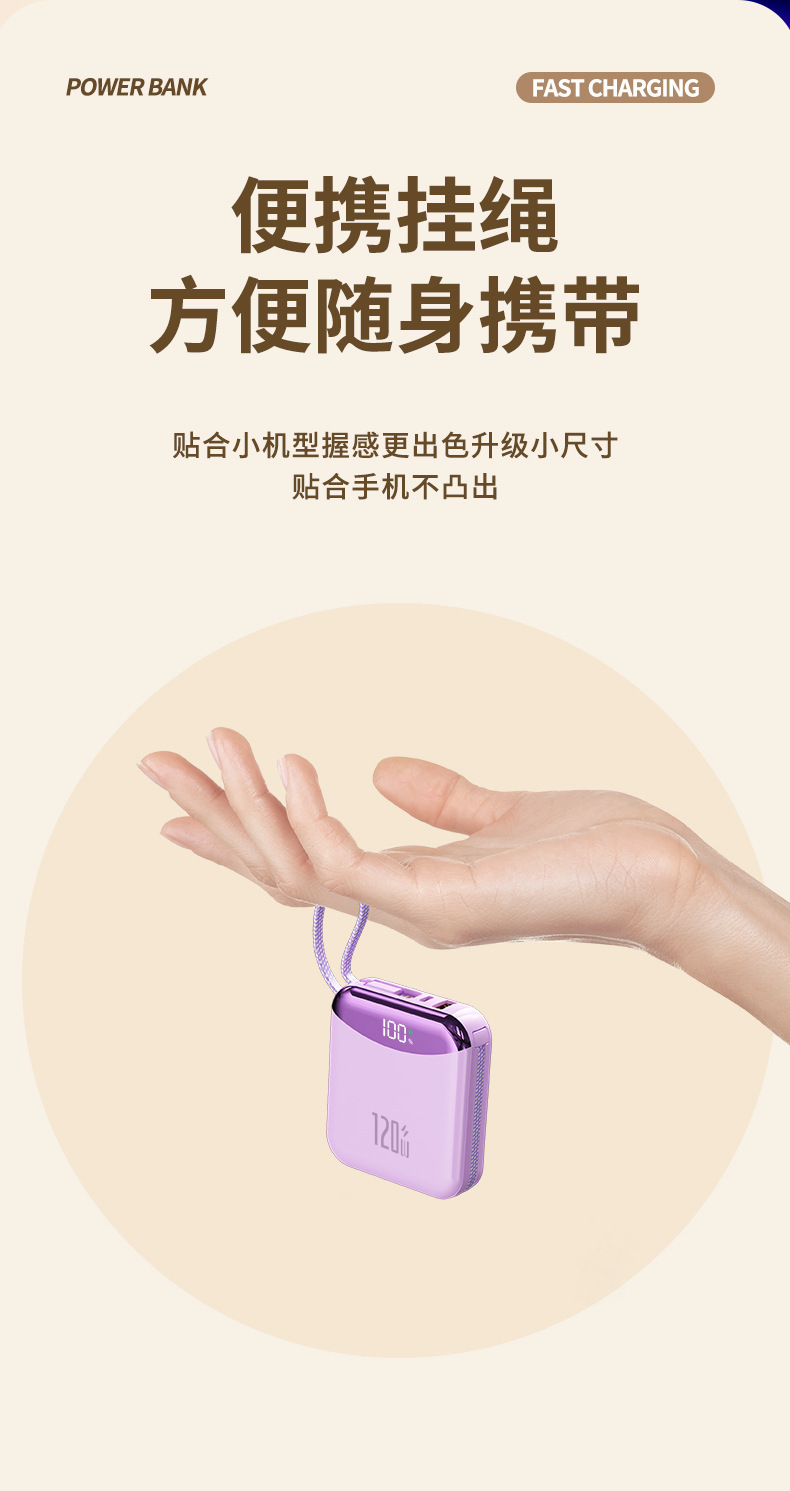 120W 슈퍼 빠른 충전 셀프 벨트 라인 20000 mA 대용량 소형 휴대용 충전 보물 휴대 전화 범용 전원 공급 장치스토어 가기