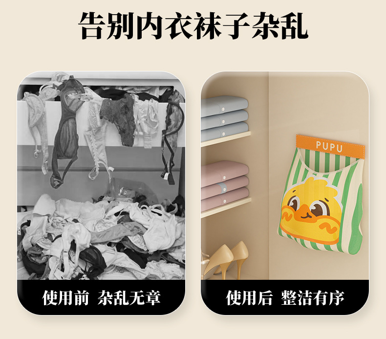 양말 수납 가방 기숙사 옷장 문 뒤에 부착하는 매직 테이프 속옷 수납 걸이 가방 대용량 잡화 정리 가방스토어 가기