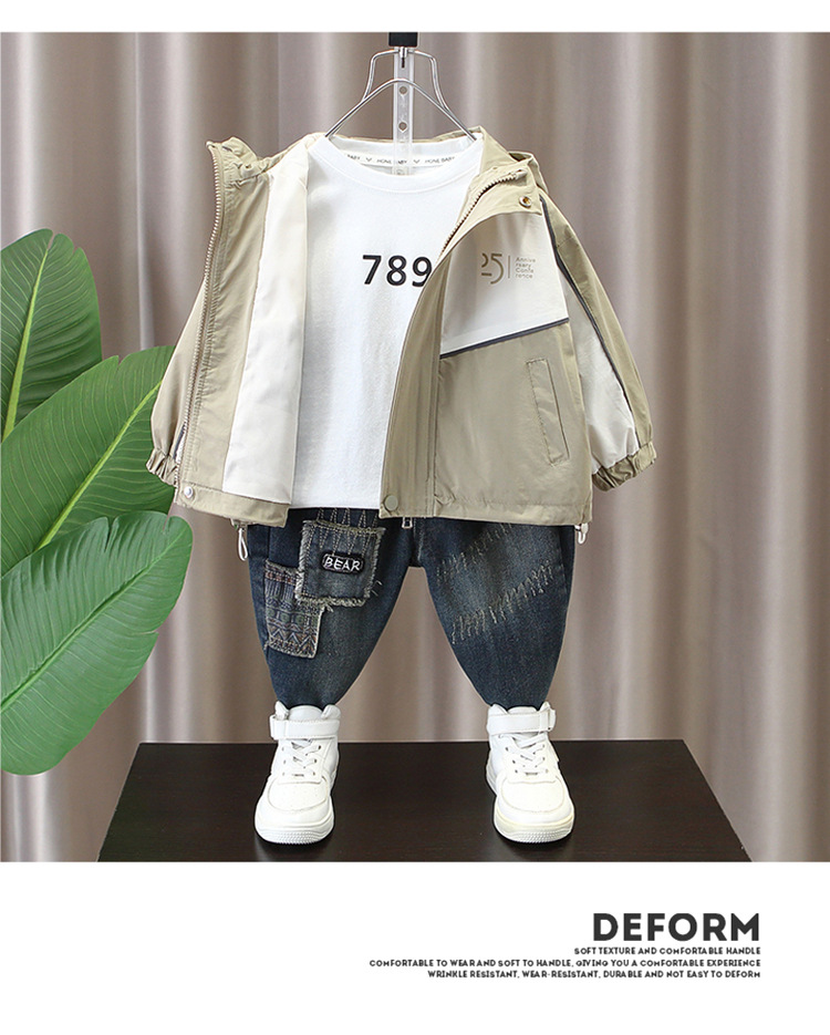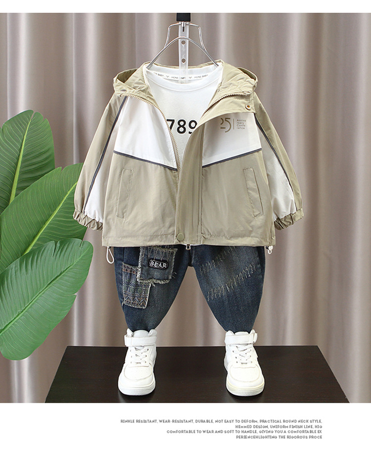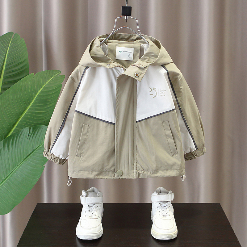 소년의 봄과 가을 Rusk Coat 2025 새로운 스타일 어린이 봄 패션 캐주얼 후드 윈드 브레이커 재킷 트렌디스토어 가기