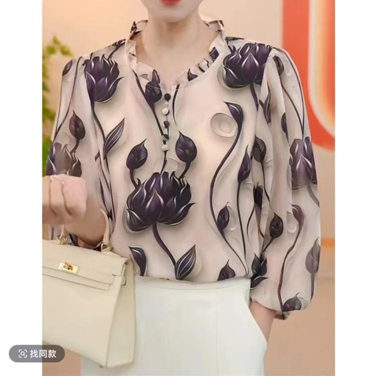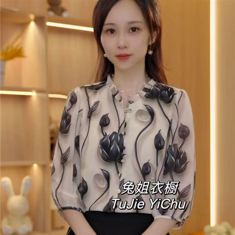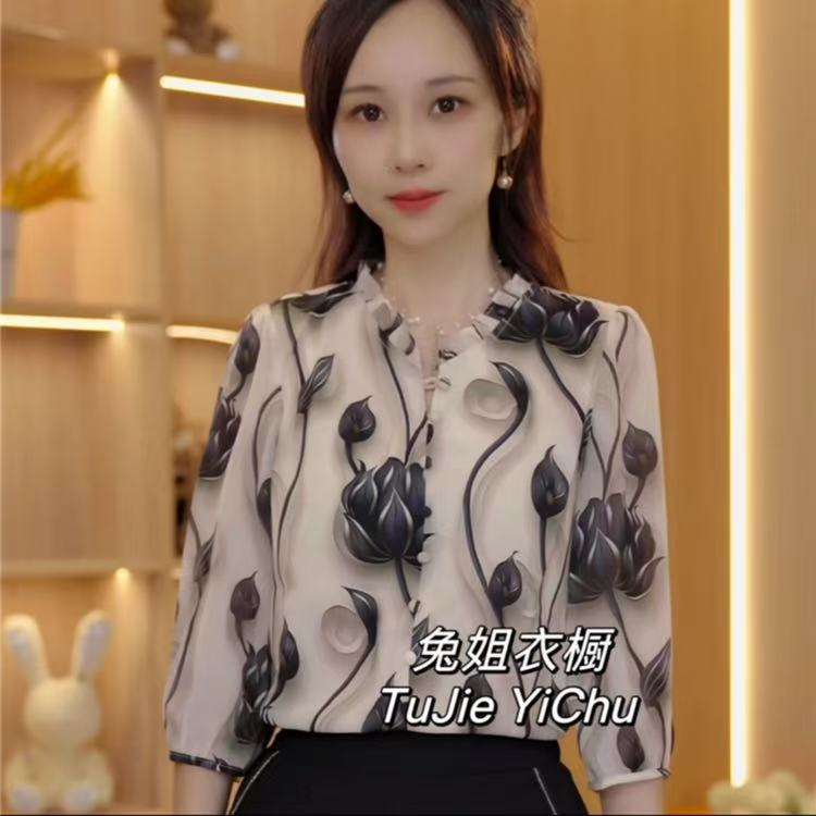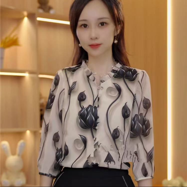 헤어 플로럴 티셔츠 셔츠 숙녀 여름 새로운 느슨한 플러스 사이즈 슬림 나이-감소 외국 스타일 아름다운 작은 셔츠스토어 가기