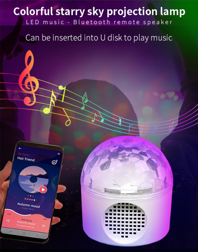 크로스보더 블루투스 스피커 크리스탈 매직 볼 램프 로맨틱 분위기 야간등 미니 USB 차량용 조명 분위기등