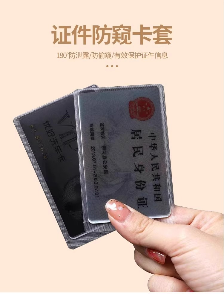 안티-peep 카드 커버 양면 ID 카드 보호 커버 은행 카드 보호 방지 누설 보호 개인 정보 보호 문서 커버 안티-degaussing 방수스토어 가기