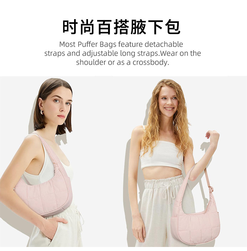 새로운 나일론 퀼트 숄더 백 조정 가능한 어깨 스트랩 푹신한 언더암 가방 대용량 푹신한 다운 토트스토어 가기