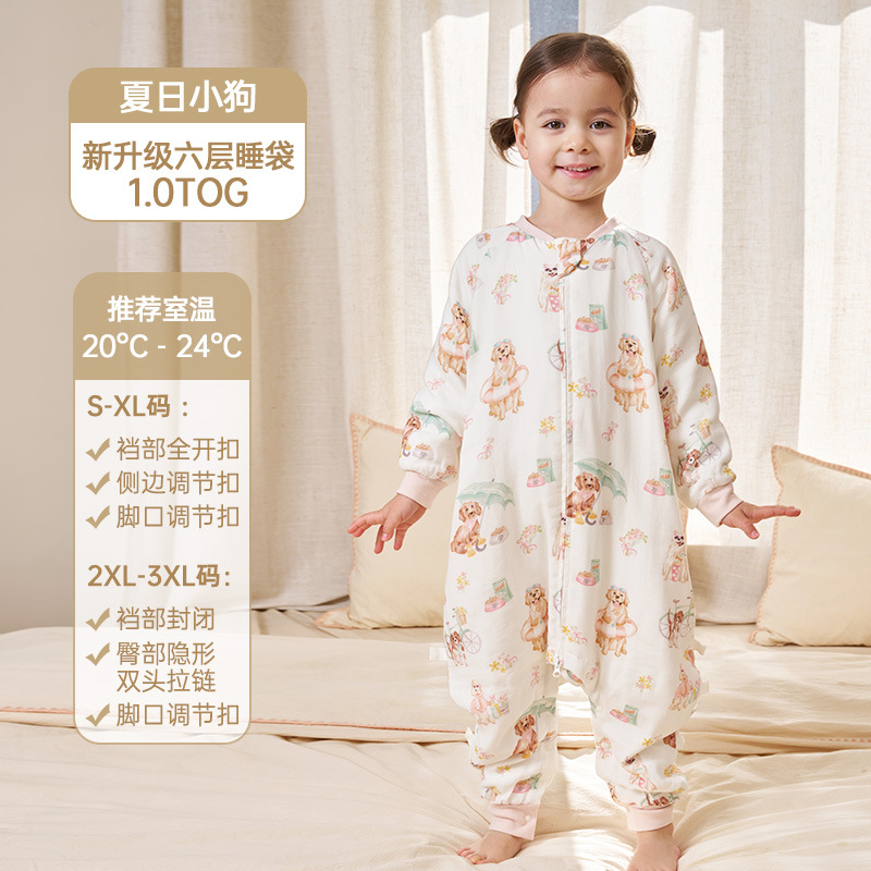 안단 침낭 봄 여름 신상품 풀버튼 6겹 대나무 면 거즈 침낭 유아용 다리 분리형 중대형 아동용 발차기 방지 침낭