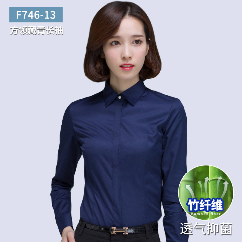 대나무 섬유 여성용 셔츠 자수 로고 통기성 상의 작업복 캐주얼 긴팔 슬림핏 출퇴근복
