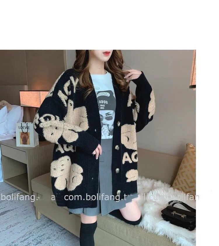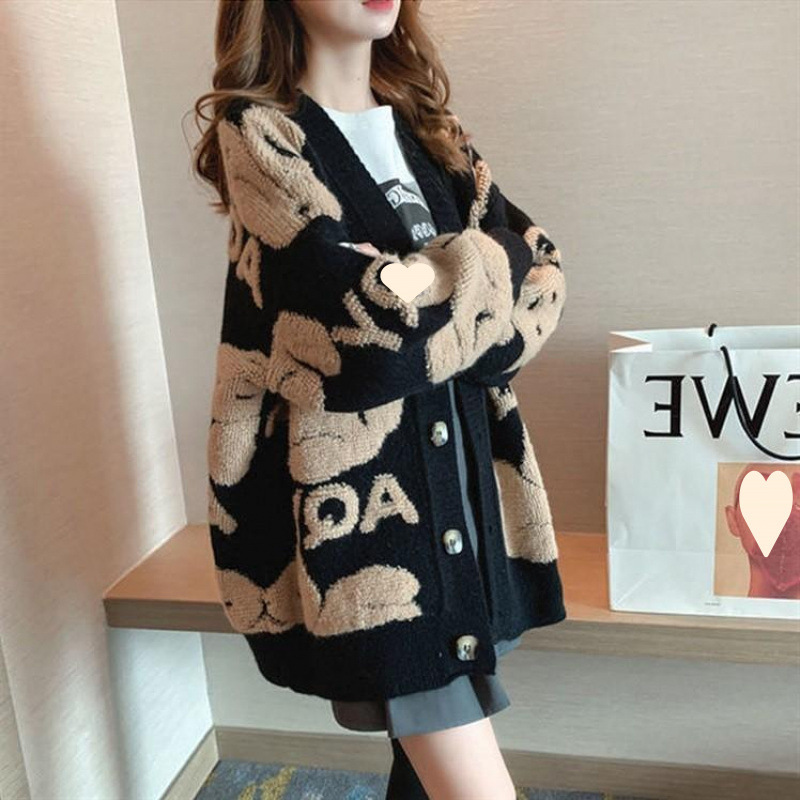 스웨터 코트 봄 여성의 2024 새로운 패셔너블 게으른 한국 스타일 느슨한 플러스 사이즈 니트 카디건 두꺼운 유행스토어 가기