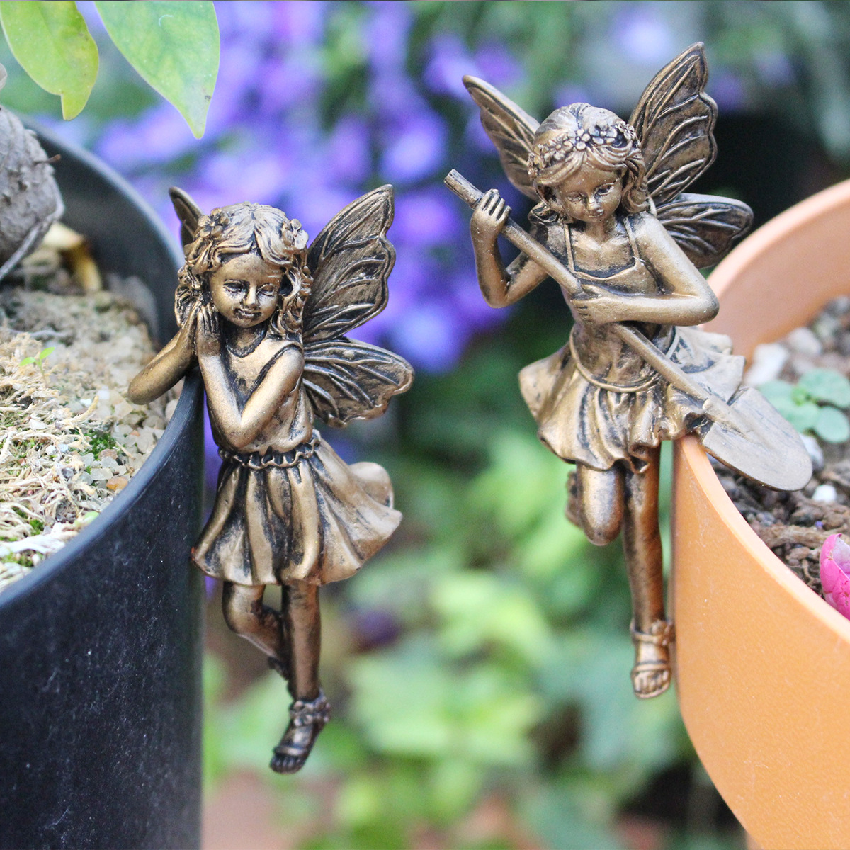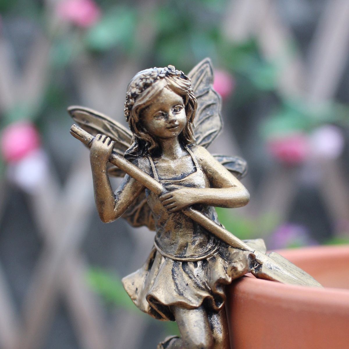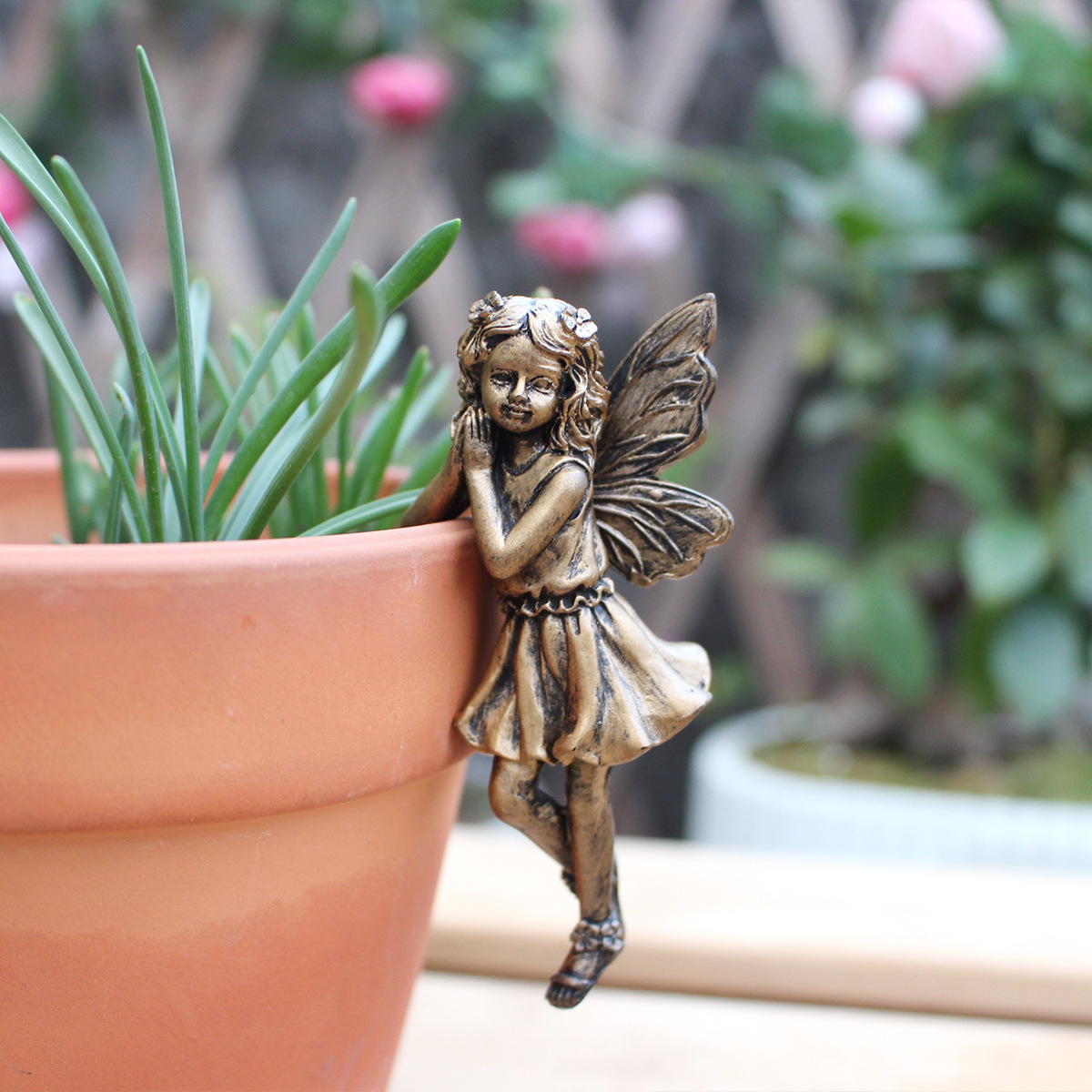 【品名】仿铜花仙子花盆挂件