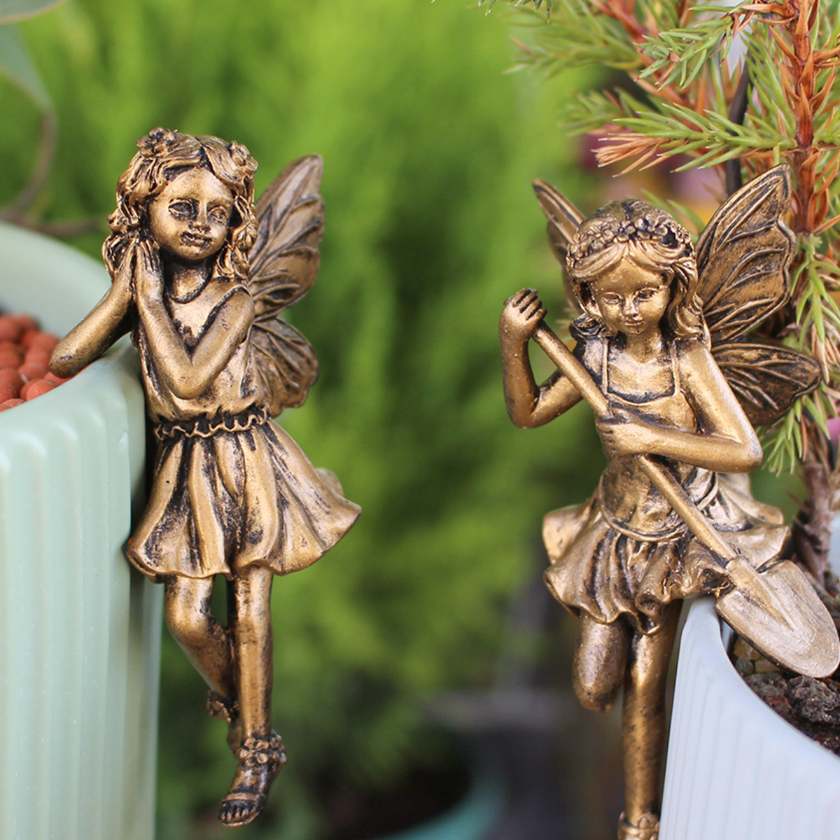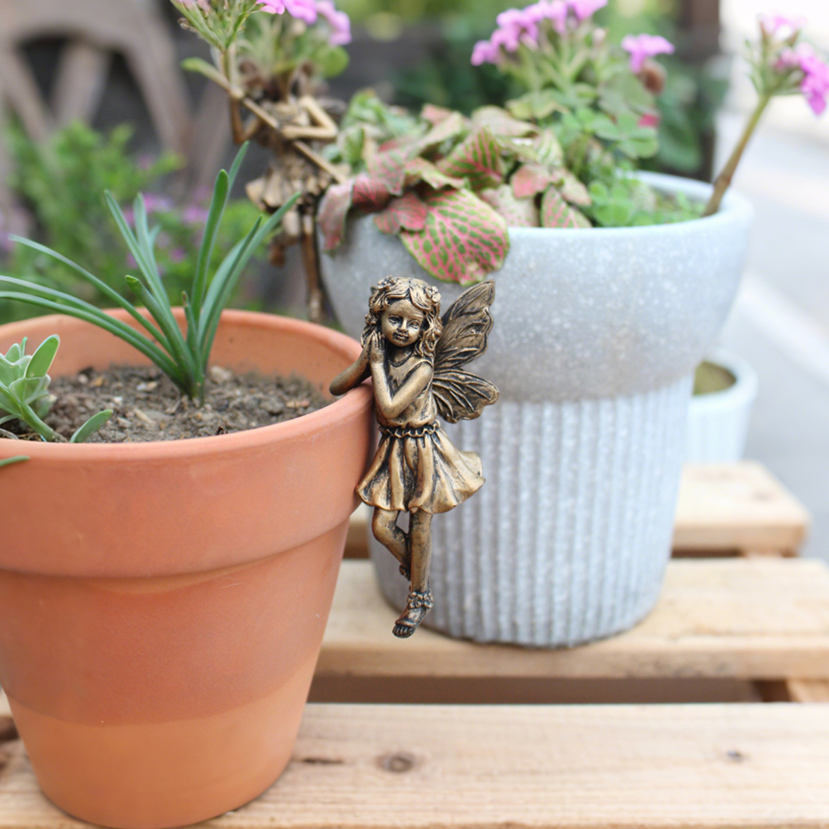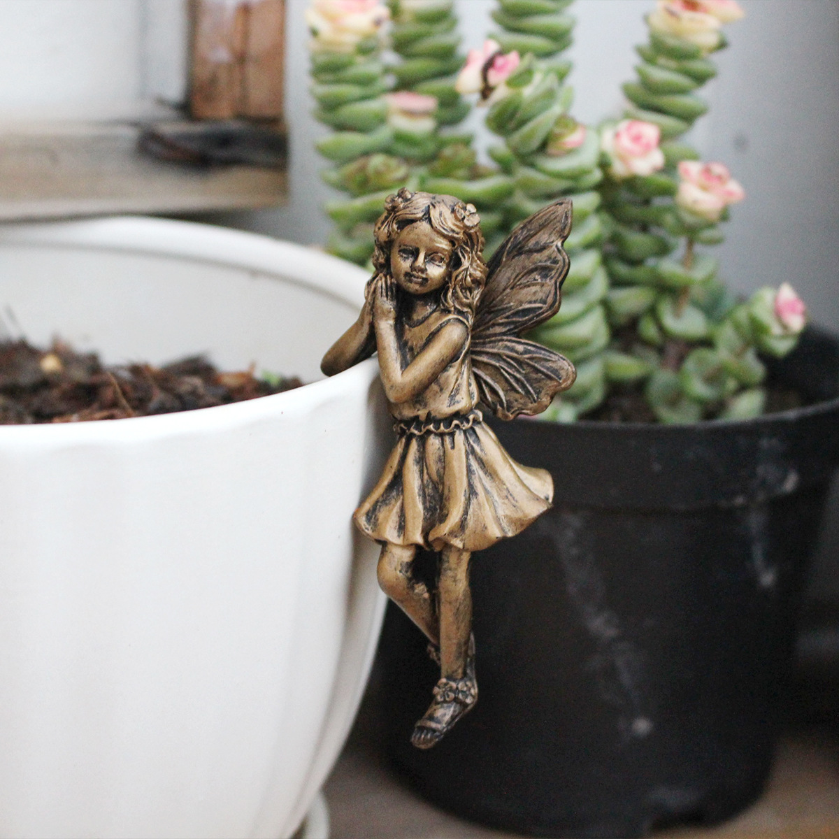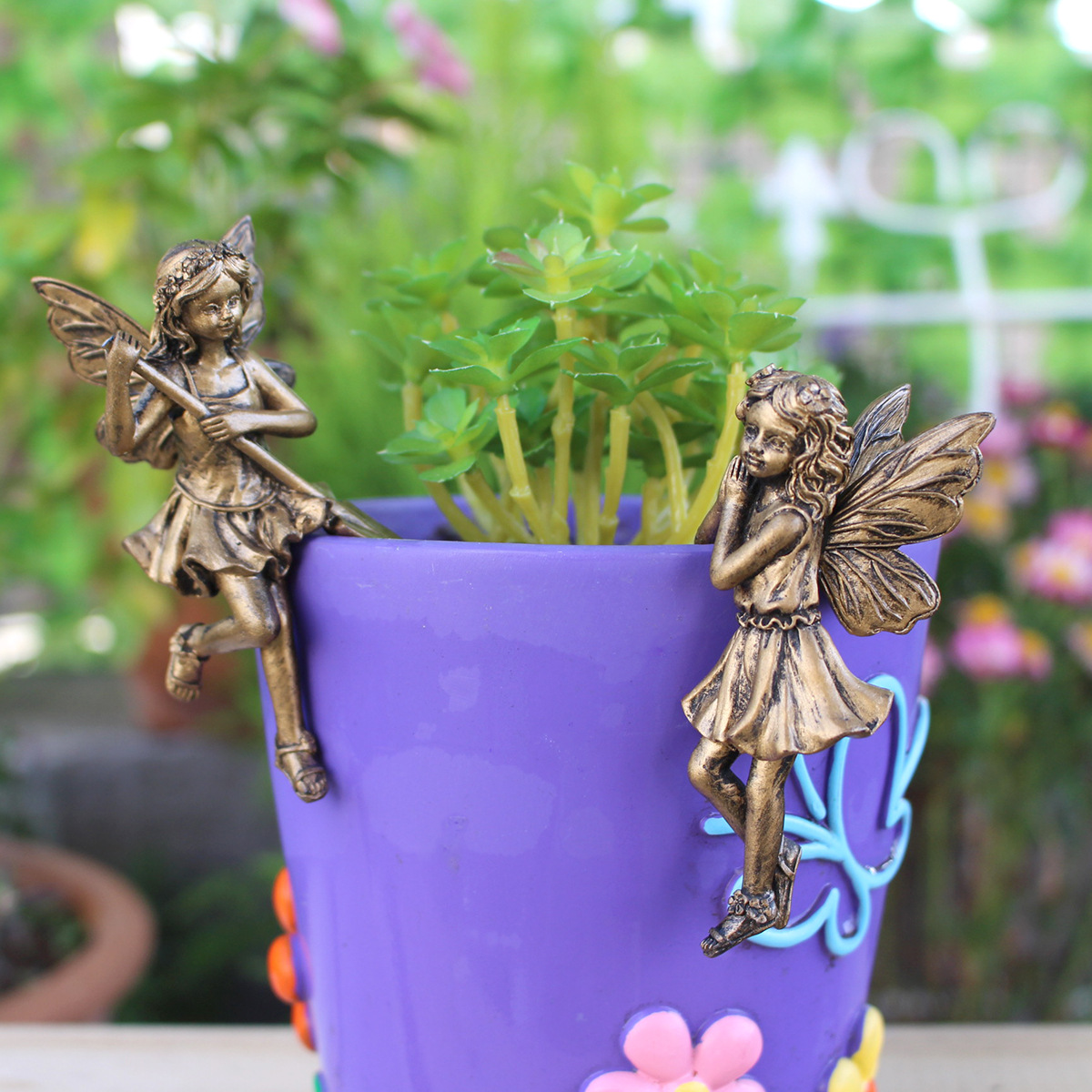 【品名】仿铜花仙子花盆挂件