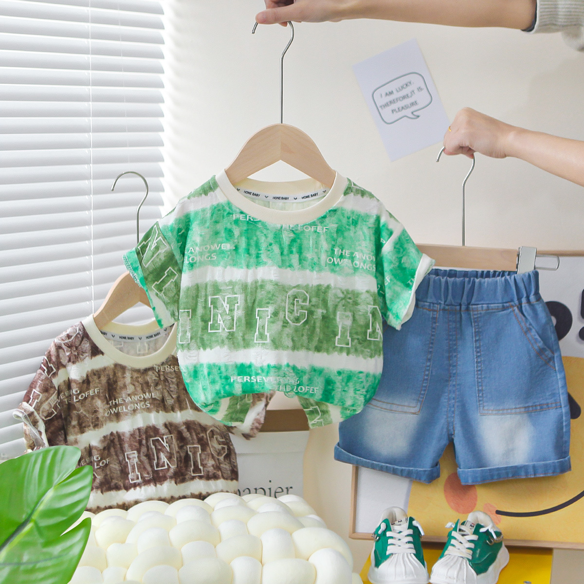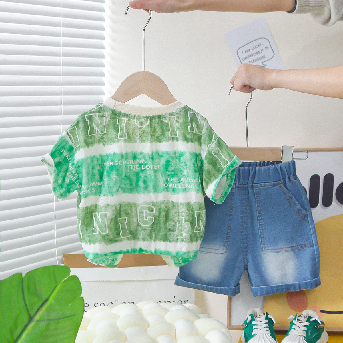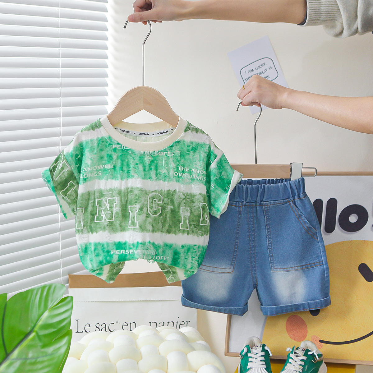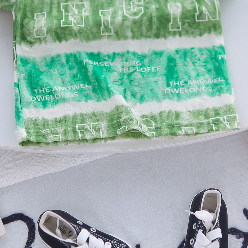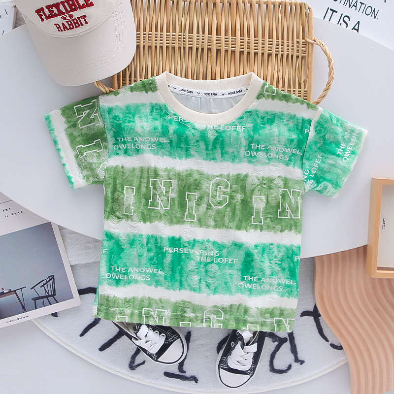 소년 여름 서양식 인터넷 인기있는 반팔 세트 2025 새로운 여름 어린이 Sizzy 넓은 편지 반팔 세트