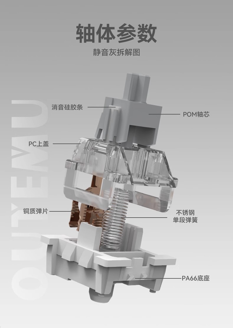 높은 특수 축 음소거 시리즈 음소거 흰색 축/노란색 축/회색 축 맞춤형 기계 키보드 축 바디 핫 플러그 스위치
