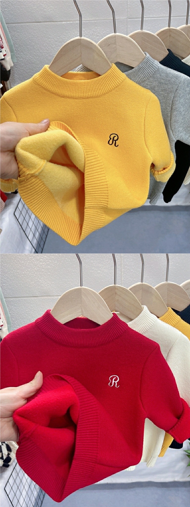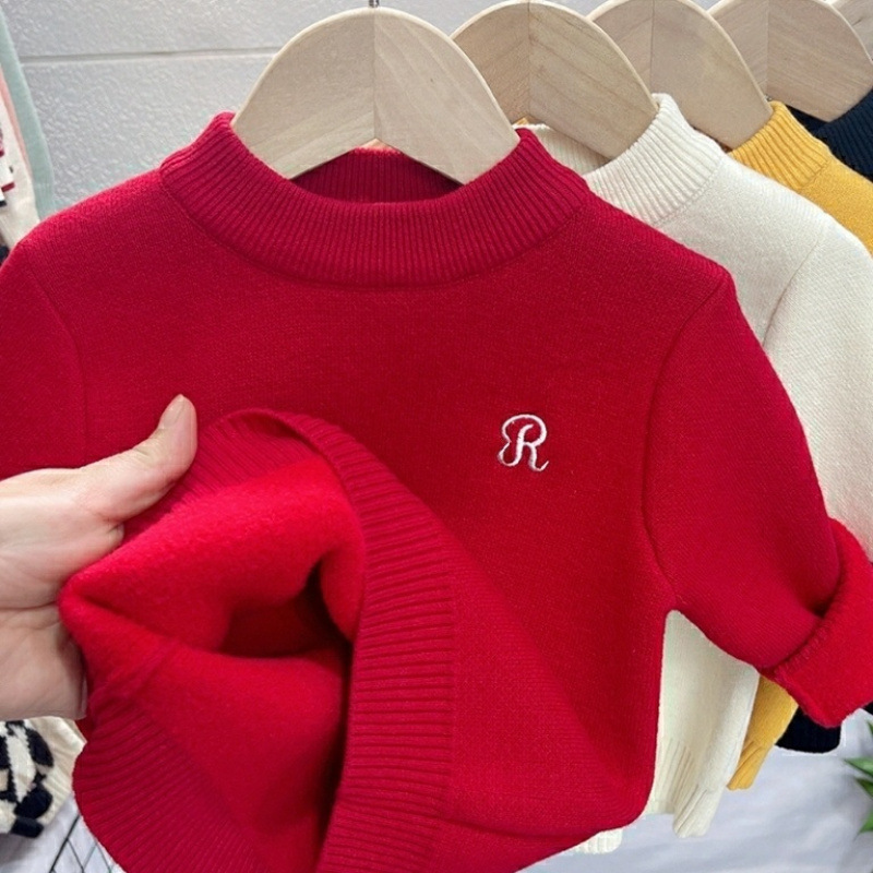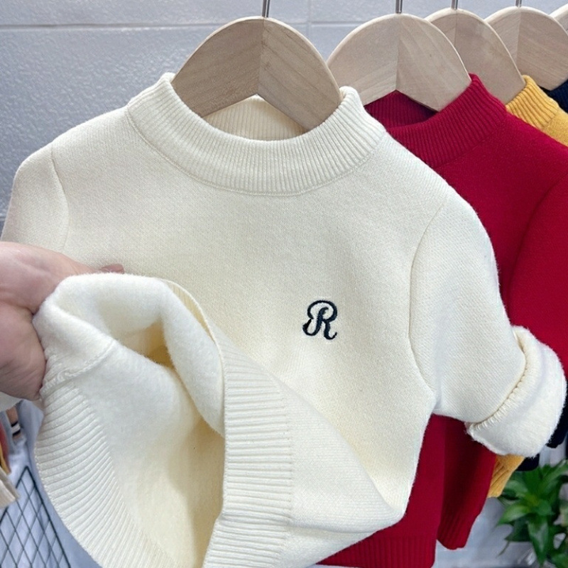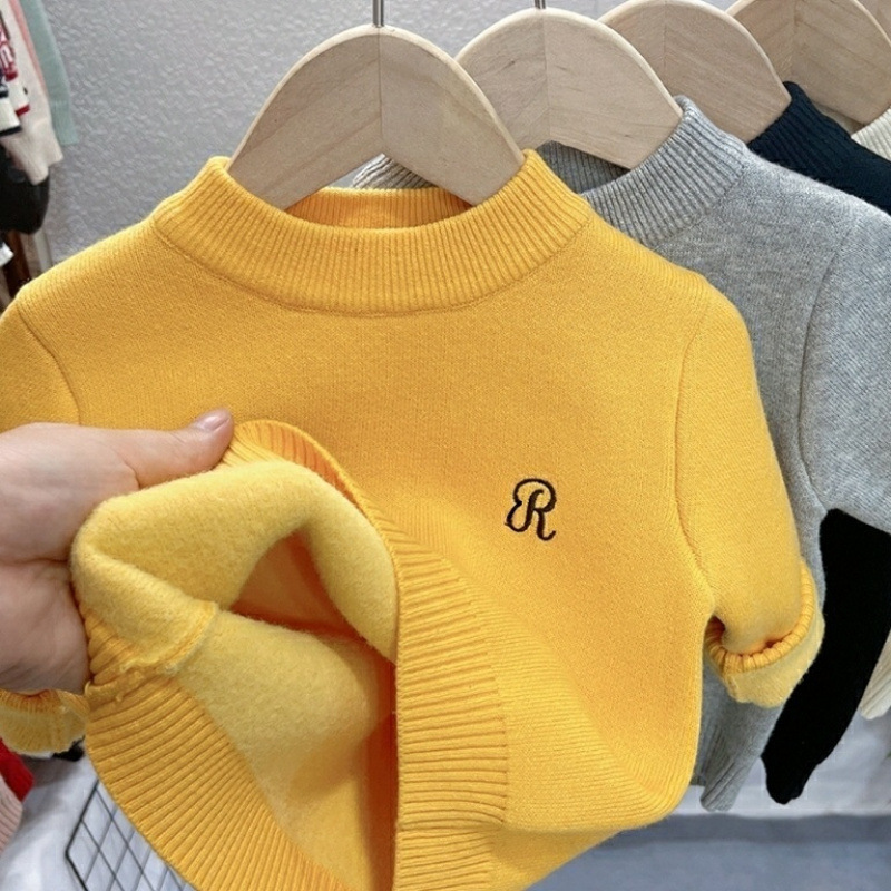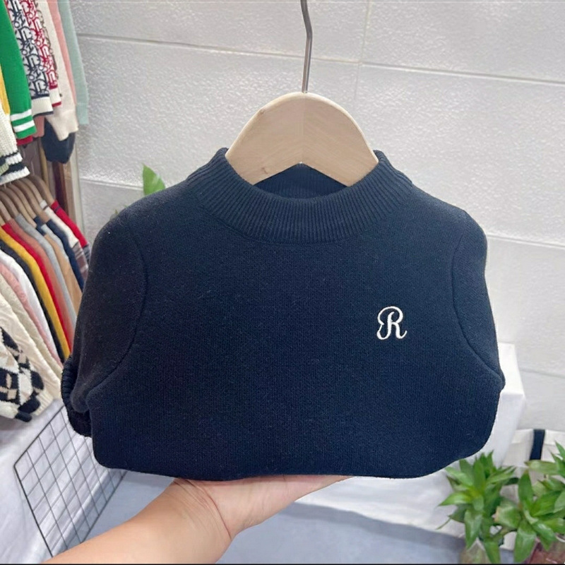 어린이 스웨터 가을과 겨울 새 소년과 소녀 원피스 벨벳 니트 베이비베이스 셔츠 블랙 탑 기모 트렌드