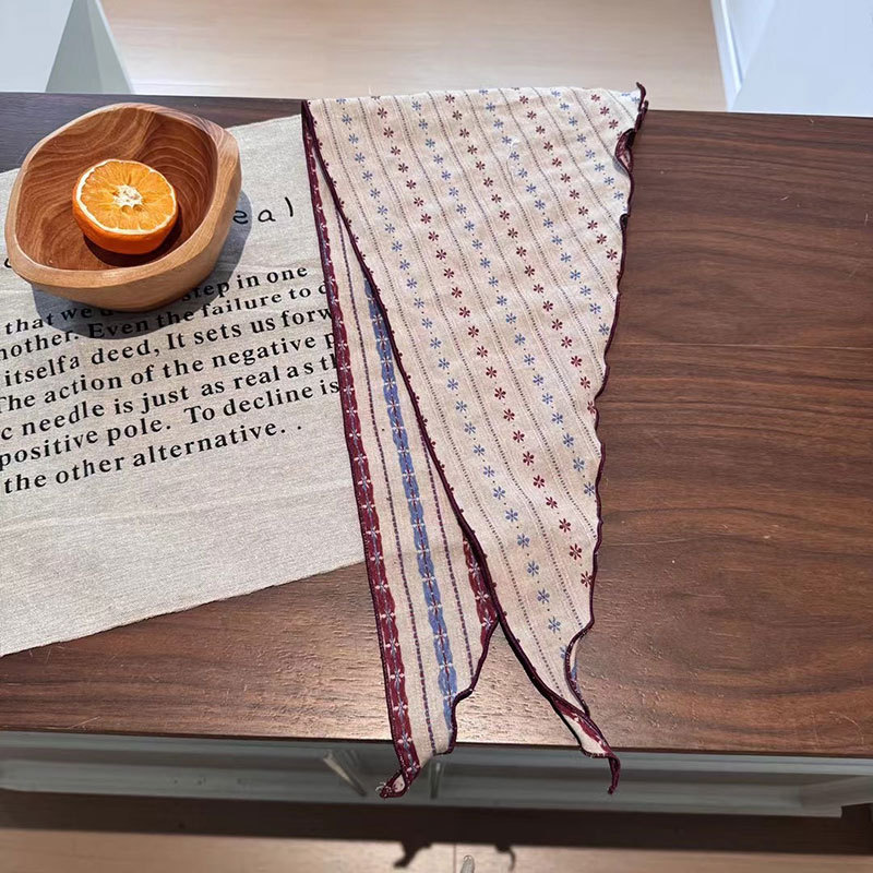 한국 왕조 같은 스타일 ~ 레트로 작은 꽃 삼각형 스카프 면과 리넨 일본 예술 조커 실크 스카프 장식 작은 스카프 머리 스카프