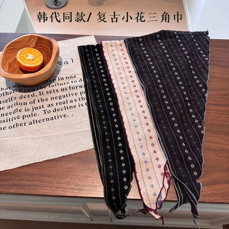 한국 왕조 같은 스타일 ~ 레트로 작은 꽃 삼각형 스카프 면과 리넨 일본 예술 조커 실크 스카프 장식 작은 스카프 머리 스카프스토어 가기