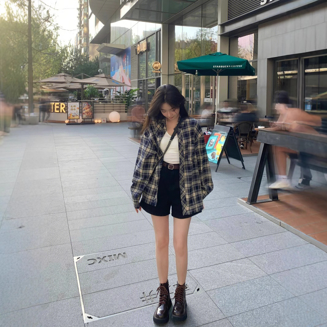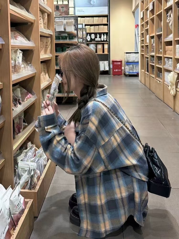 봄과 가을 격자 무늬 셔츠 여성용 느슨한 게으른 스타일 여성 톱 2025 초가을 새 스타일 셔츠 빈티지 격자 무늬 코트스토어 가기