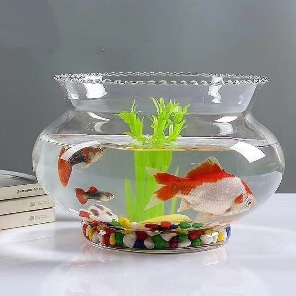 공장 직접 공급 라운드 유리 레이스 어항 거실 작은 미니 투명 금붕어 탱크 거북이 탱크 수족관