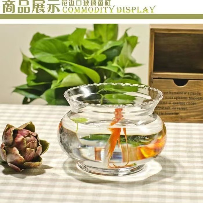 공장 직접 공급 라운드 유리 레이스 어항 거실 작은 미니 투명 금붕어 탱크 거북이 탱크 수족관스토어 가기