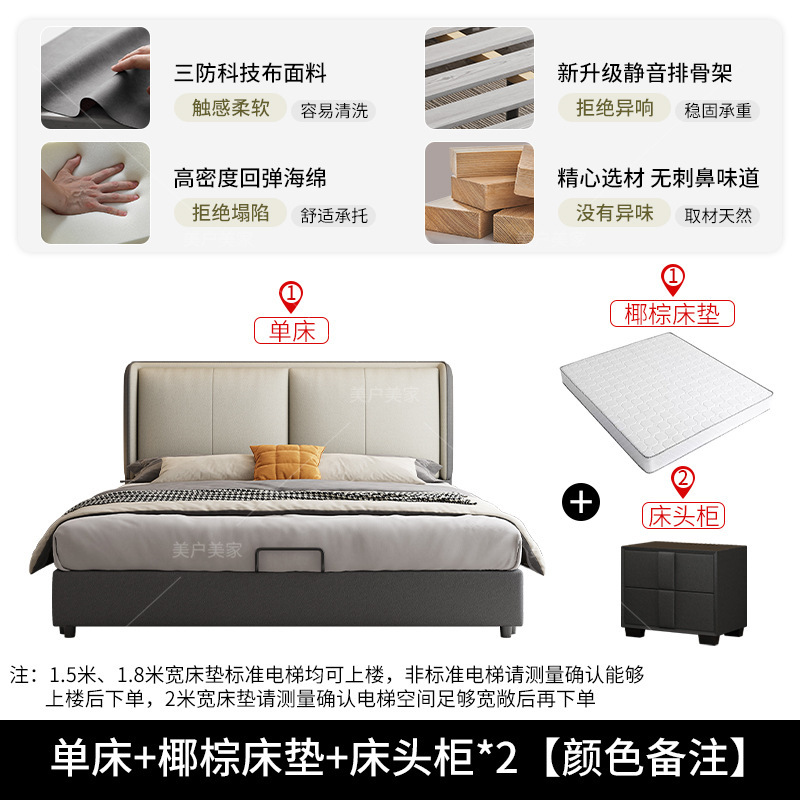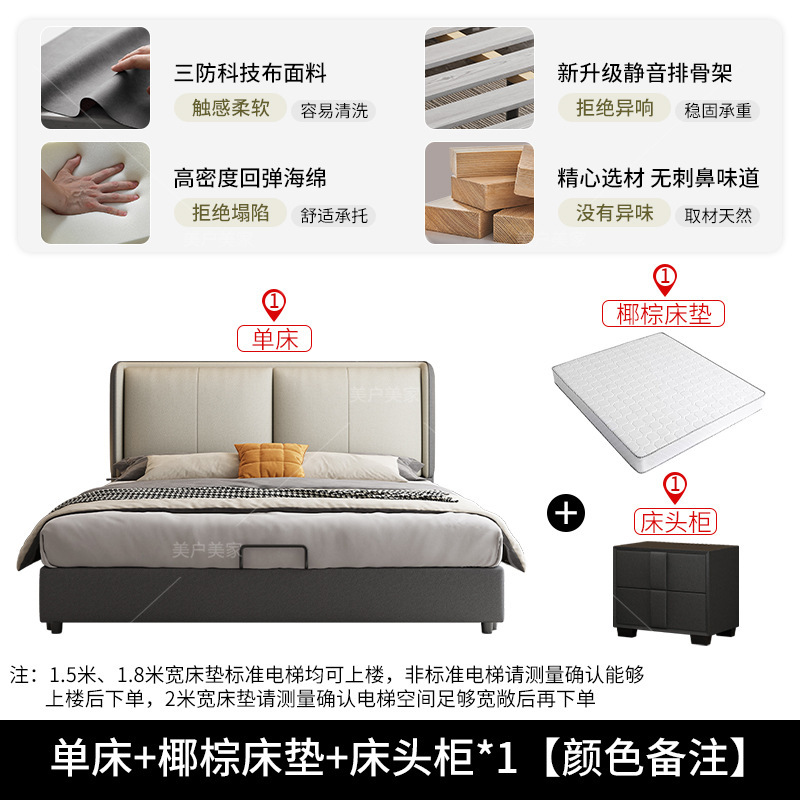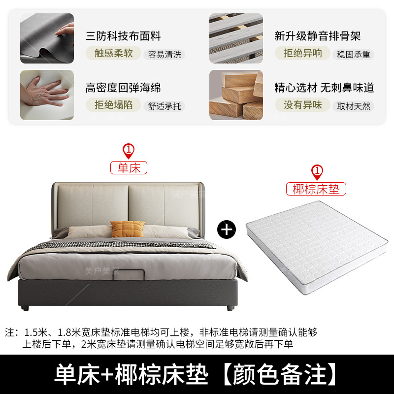 • 테크니컬 패브릭 싱글 침대 + 3E 친환경 코코넛 야자 매트리스 + 캐비닛 1개