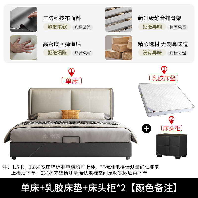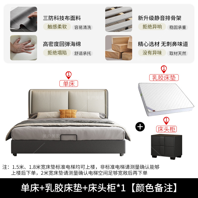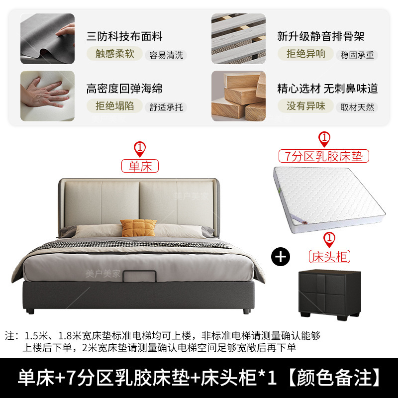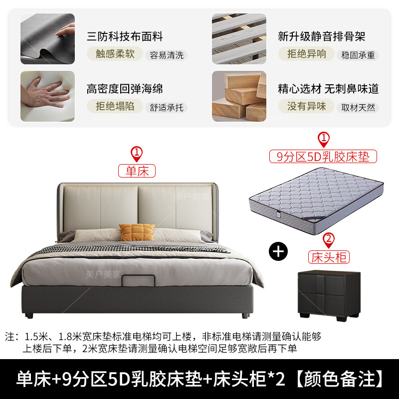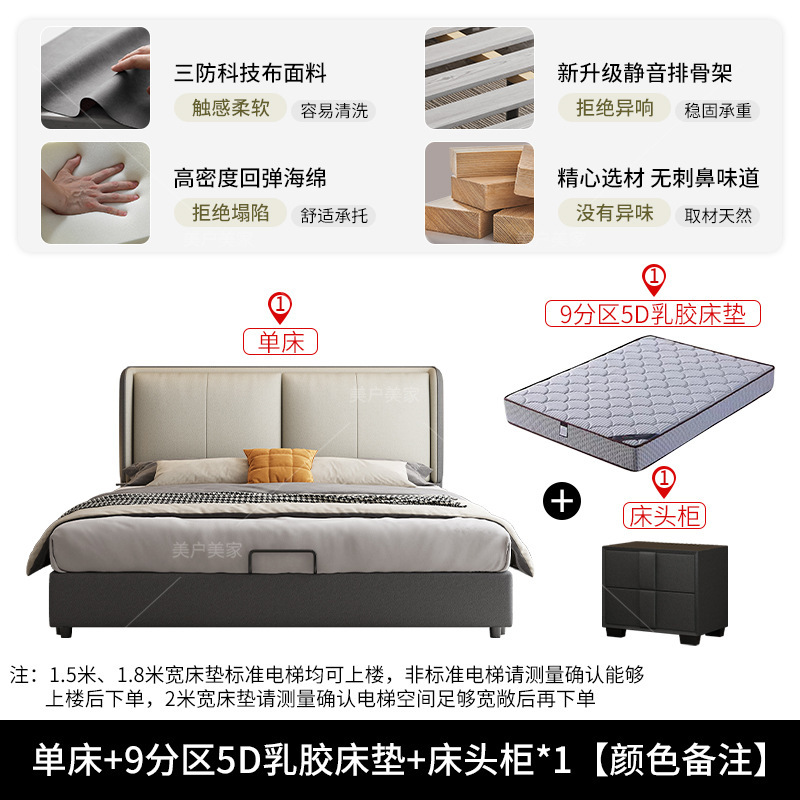 • 테크니컬 패브릭 싱글 침대 + 9존 5D 라텍스 매트리스 + 캐비닛 2개