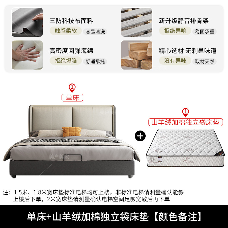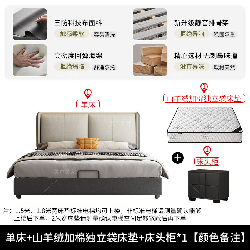 • 테크니컬 패브릭 싱글 침대 + 캐시미어 및 면 독립 백 매트리스 + 캐비닛 1개